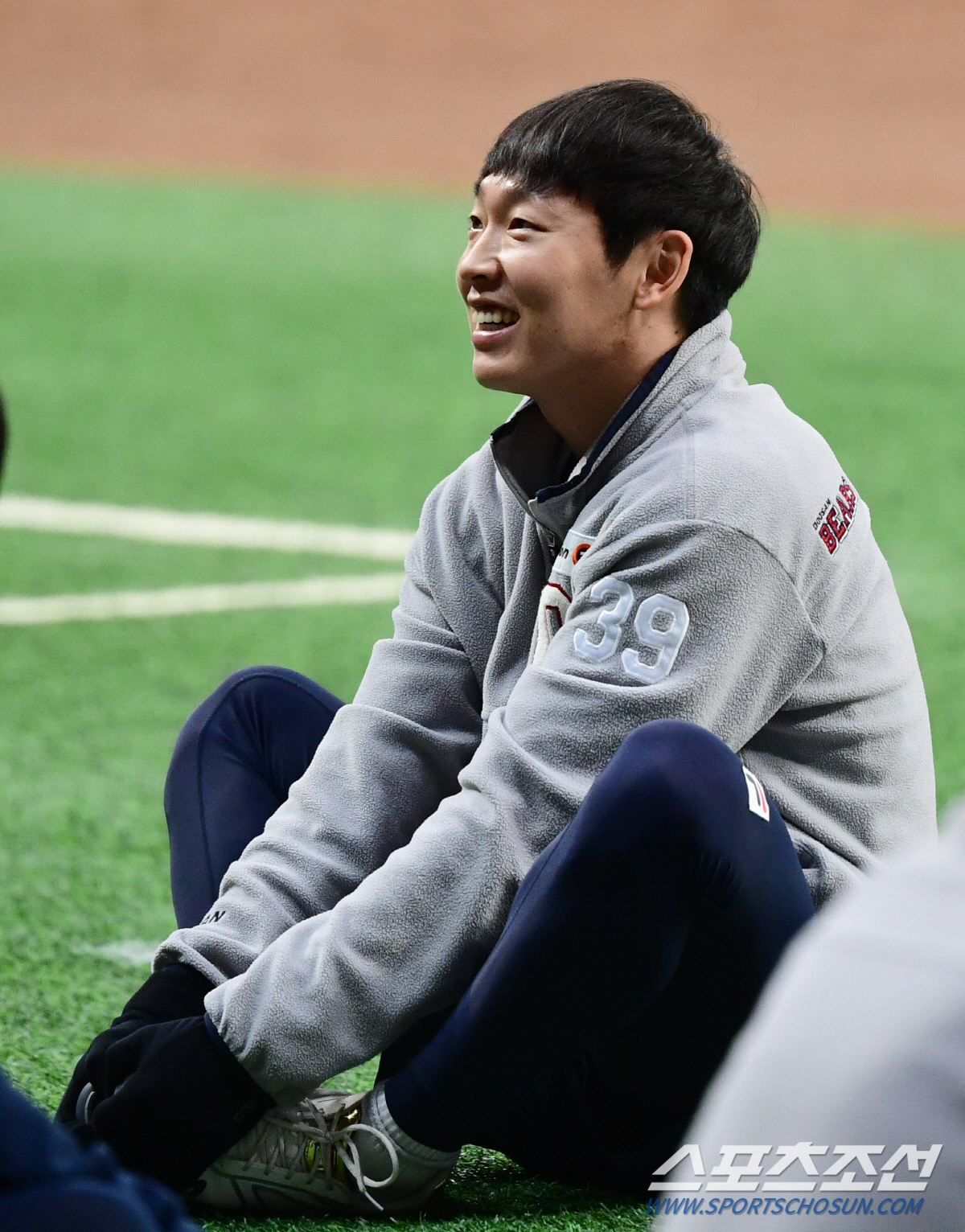 KBO리그 한국시리즈 5차전 두산베어스와 NC다이노스의 경기가 23일 서울 고척스카이돔에서 열릴 예정이다. 경기전. 두산 정수빈이 스트레칭으로 몸을 풀고 있다. 고척=최문영 기자 deer@sportschosun.com /2020.11.23/