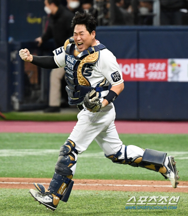2020 KBO 리그 한국시리즈 6차전 두산 베어스와 NC 다이노스의 경기가 24일 고척스카이돔에서 열렸다. 한국시리즈 우승을 차지한 NC 주장 양의지가 환호하고 있다. 고척=박재만 기자 pjm@sportschosun.com/2020.11.24/