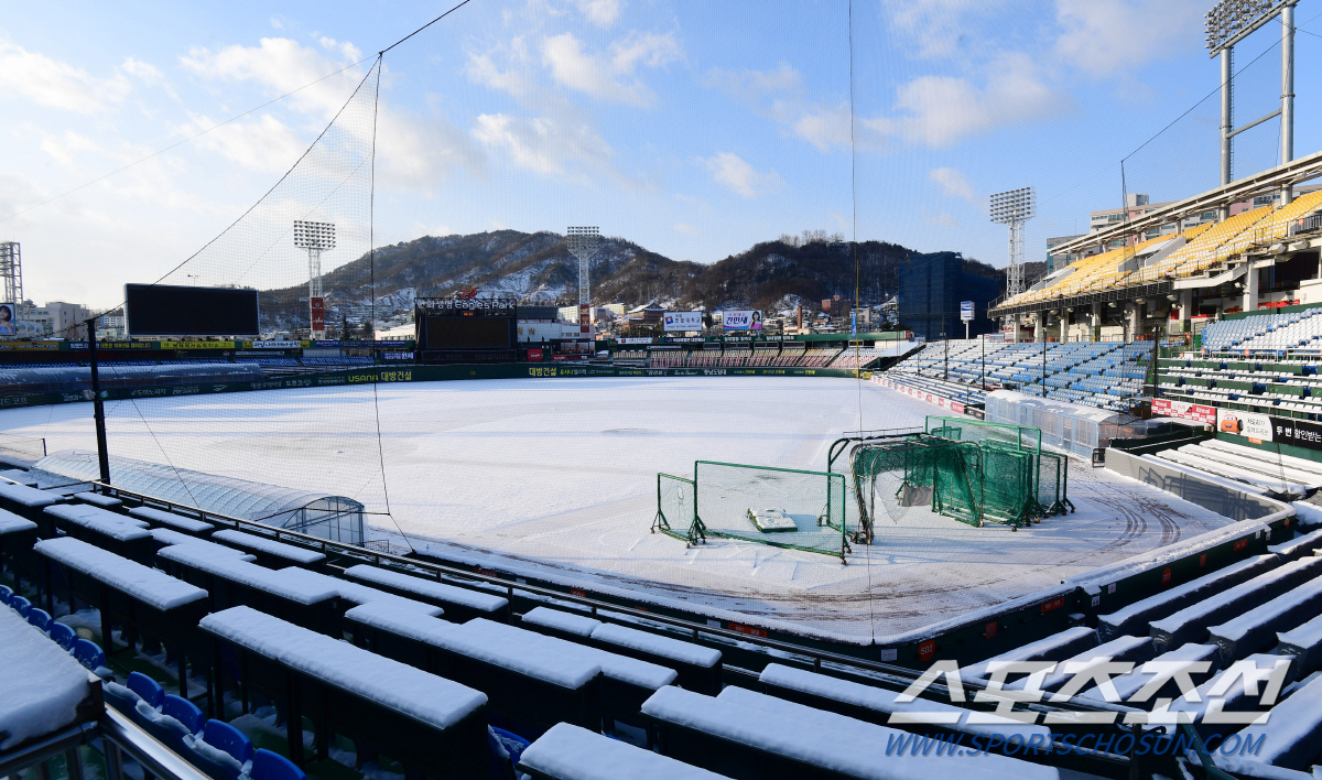 프로야구 한화이글스의 홈구장인 대전 한화생명 이글스파크가 전날 내린 눈으로 하얗게 변했다. 수베로 감독이 이끄는 독수리 군단은 16일 부터 대전에서 2차 스프링캠프에 돌입했다. 대전=최문영 기자 deer@sportschosun.com