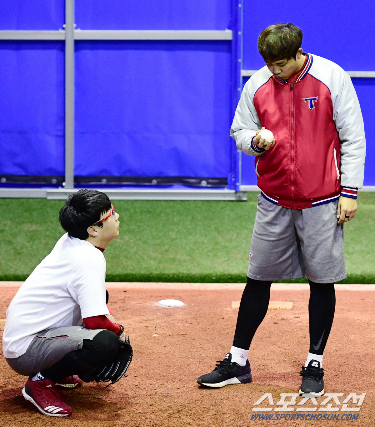 양현종은 불 꺼진 실내 훈련장의 불을 다시 밝히고 불펜 피칭에 나섰다. 퇴근길에 양현종이 내는 날카로운 미트 소리를 들은 임기영이 불펜으로 발길을 돌렸다. 임기영은 좌-우 타자 역할을 번갈아 해 가며 양현종의 볼 컨트롤을 도왔다.