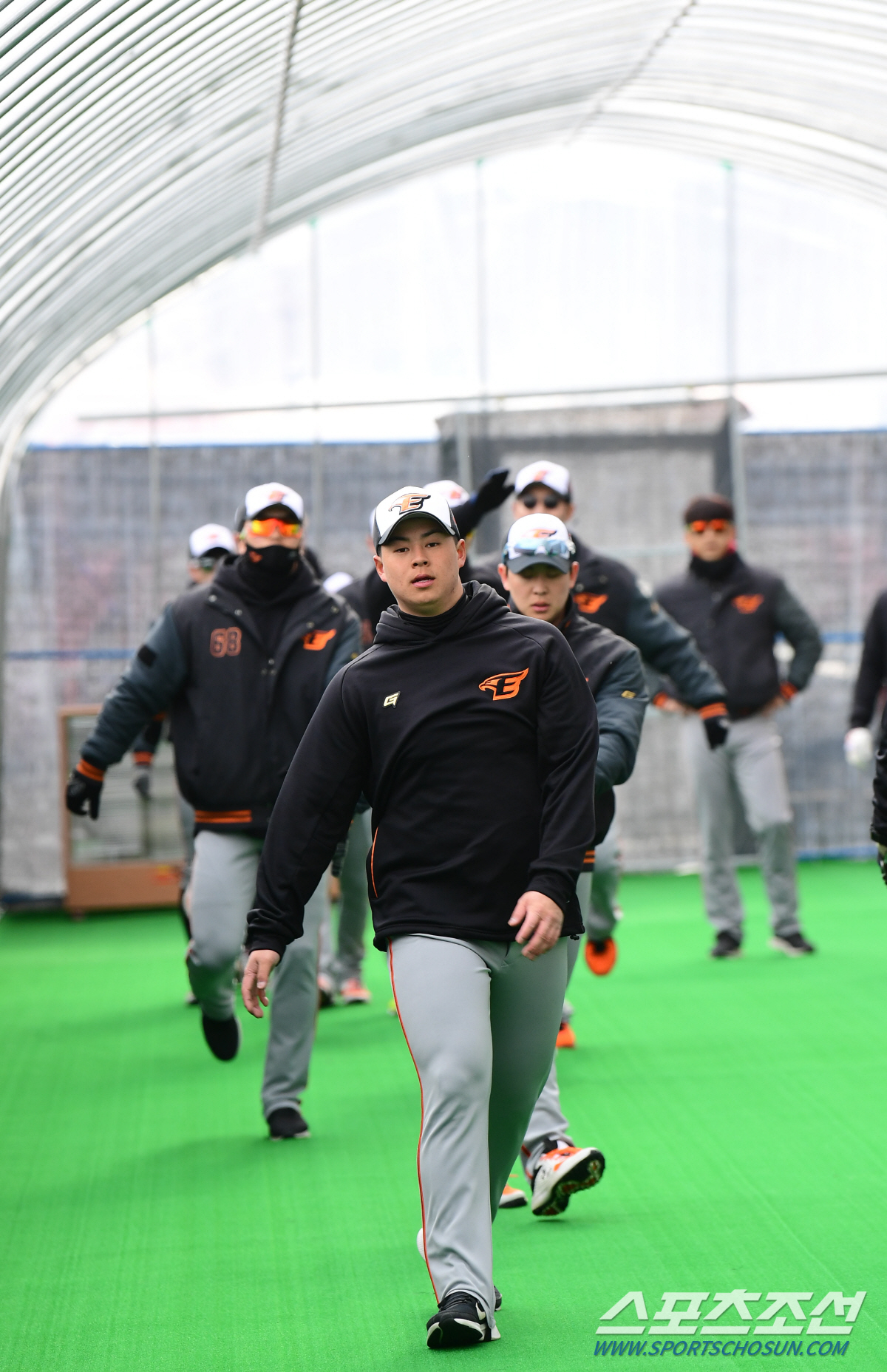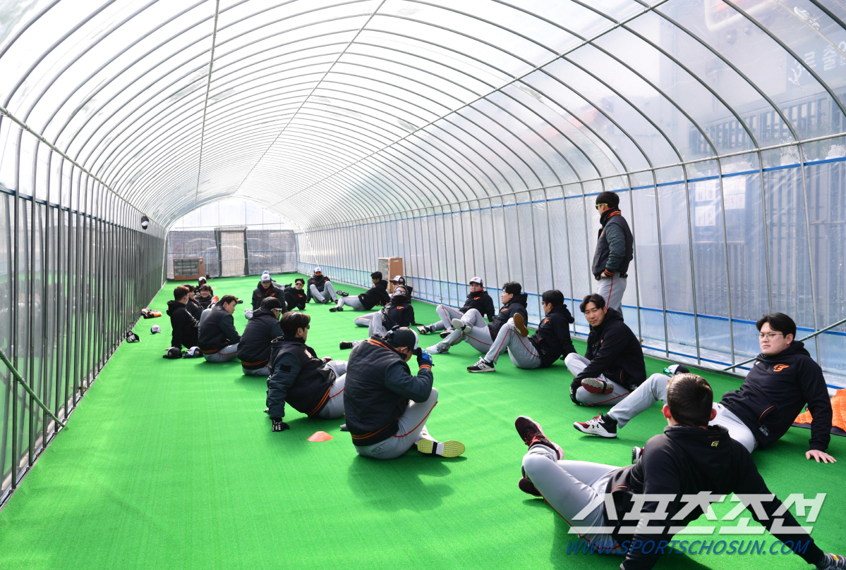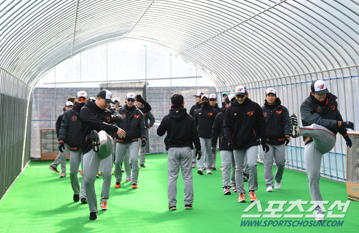 수베로 감독이 이끄는 프로야구 한화이글스 선수들이 17일 대전 한화생명 이글스파크에서 스프링캠프를 이어갔다. 거제에서 1차 캠프를 마친 독수리 군단은 16일부터 대전에 2차 스프링캠프를 차렸다. 전날 내린 폭설로 야외훈련이 어려워진 선수들은 야구장 앞마당에 차려진 비닐하우스 훈련장에서 몸을 풀었다. 비닐하우스 안에는 선수들이 내뿜는 후끈한 열기가 가득했다. 비닐하우스의 공간적 제약 때문에 스트레칭과 러닝 등 단체 운동은 야수와 투수조 등으로 나누어 이루어졌다. 눈밭으로 변한 야구장 한켠에 마련된 작은 비닐하우스에서 독수들은 힘찬 비상을 꿈꾸고 있다.