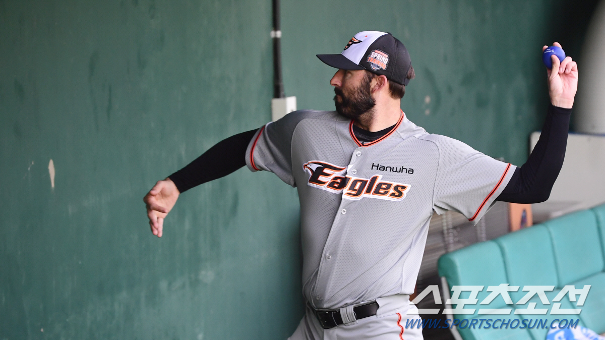 이날 카펜터는 직구, 커브, 슬라이더, 체인지업을 섞어 34구를 던지며 최고 구속 149킬로를 기록했다. 킹험 또한 18개의 공을 던지며 최고 구속 149킬로를 기록했다. 대전=최문영 기자 deer@sportschosun.com