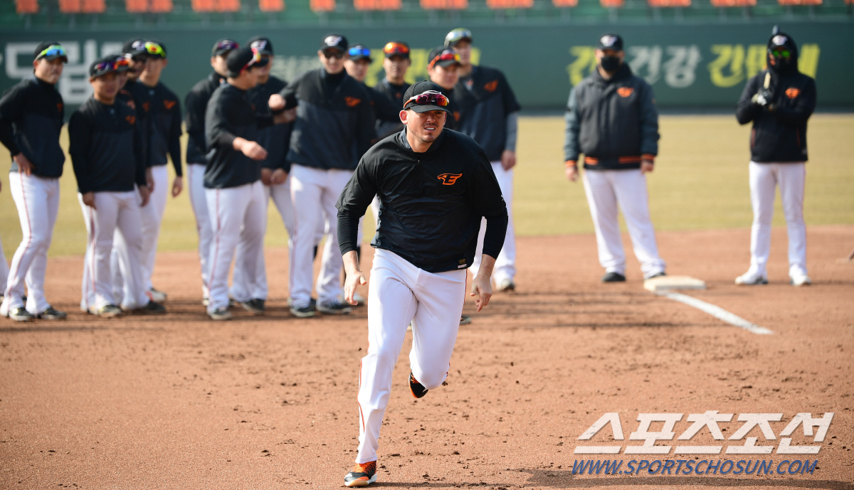 언제나 웃음소리와 환호성이 떠나지 않는 훈련장 모습도 달라졌다. 그 중심에는 타자 힐리가 있다. 8일 한화 대전구장에서 펼쳐진 훈련에서도 힐리는 우렁찬 함성으로 훈련 분위기를 이끌고, 선수들의 훈련 자세를 다독이는 에너지 넘치는 리액션을 펼쳤다. 힐리의 활기 넘치는 리액션에 선수들의 몸놀림은 더 가볍고 빨라졌다.
