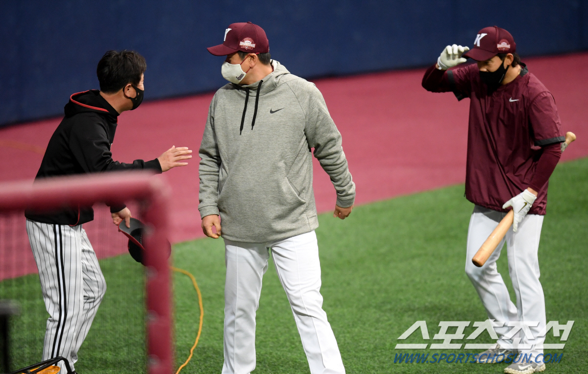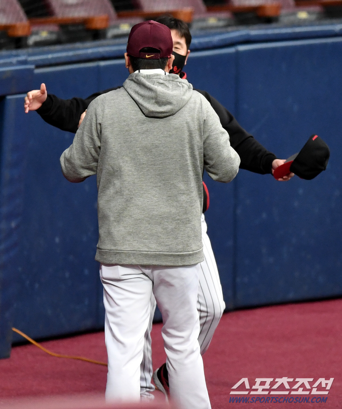 16일 고척스카이돔에서 키움과 LG의 연습경기가 열린다. 경기 전 키움의 연습이 한창이던 그라운드, 홍원기 감독을 발견한 LG 류지현 감독이 그라운드로 나섰다.