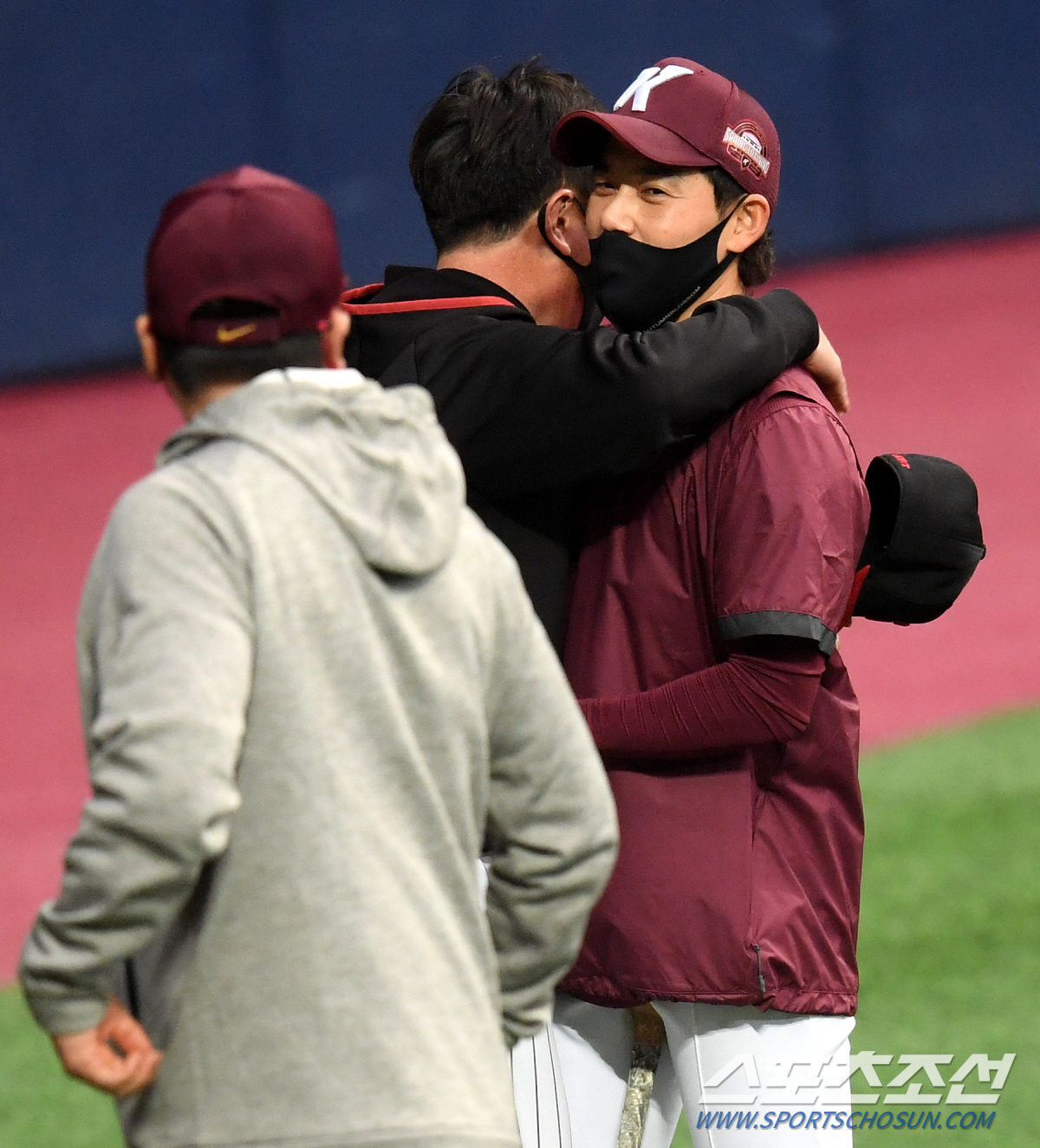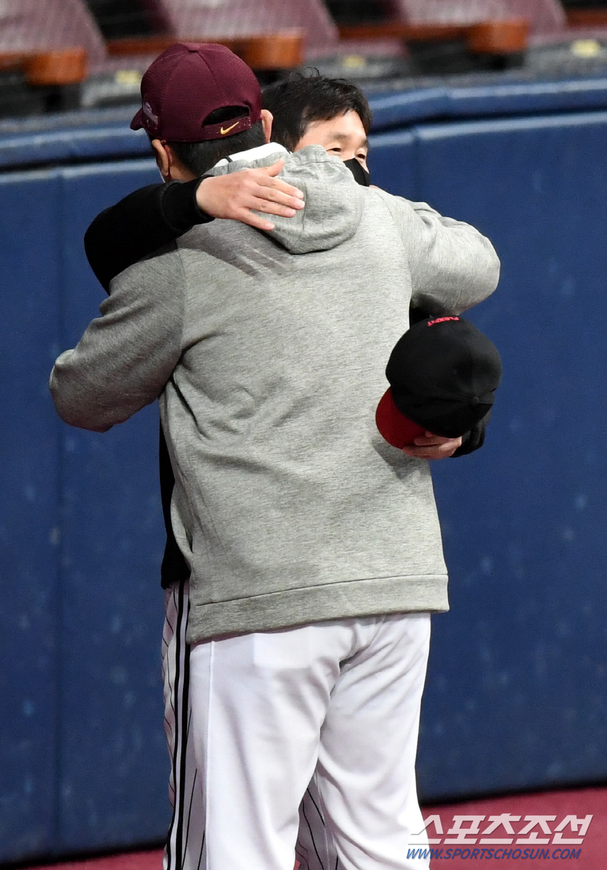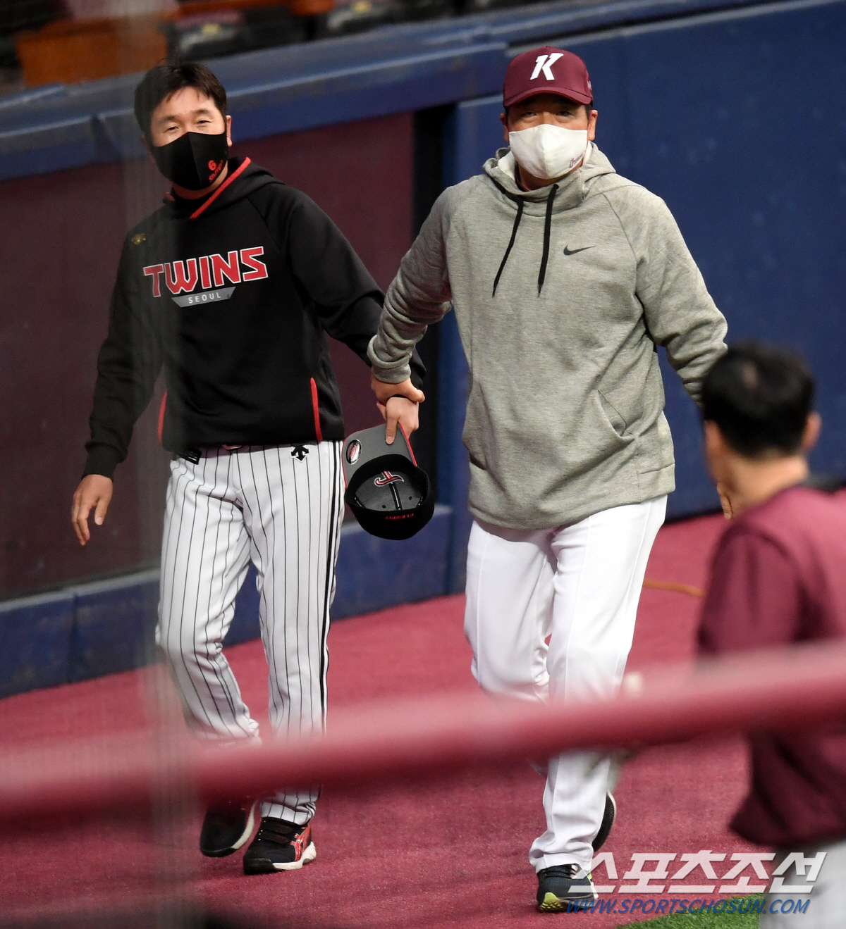 누가 먼저랄 것도 없이 서로를 향해 두 팔을 펼치며 인사를 나눈 두 감독, 홍원기 감독은 할 말이 있는 듯 류지현 감독의 손을 잡아 끌며 1루 덕아웃의 감독실로 향했다.