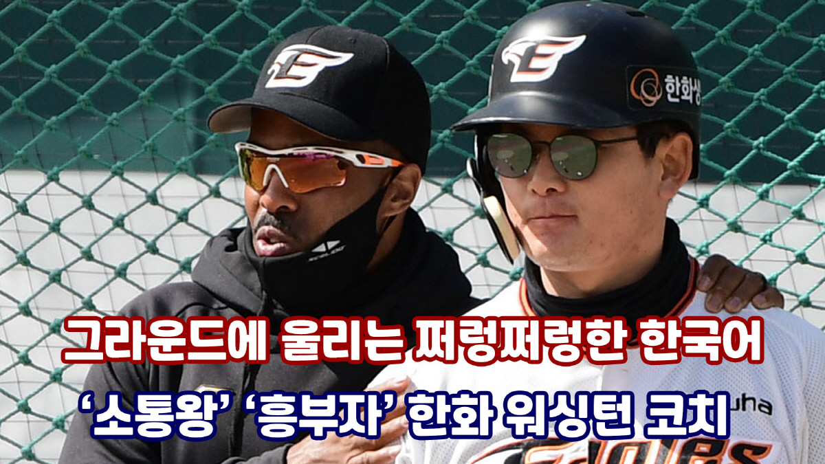 한화 이글스 워싱턴 타격코치의 에너지가 놀랍다. 끊임없이 선수들을 격려하고 흥을 돋운다. 필요한 조언은 곧바로 한국어를 습득해 원활한 의사소통에 문제도 없다.