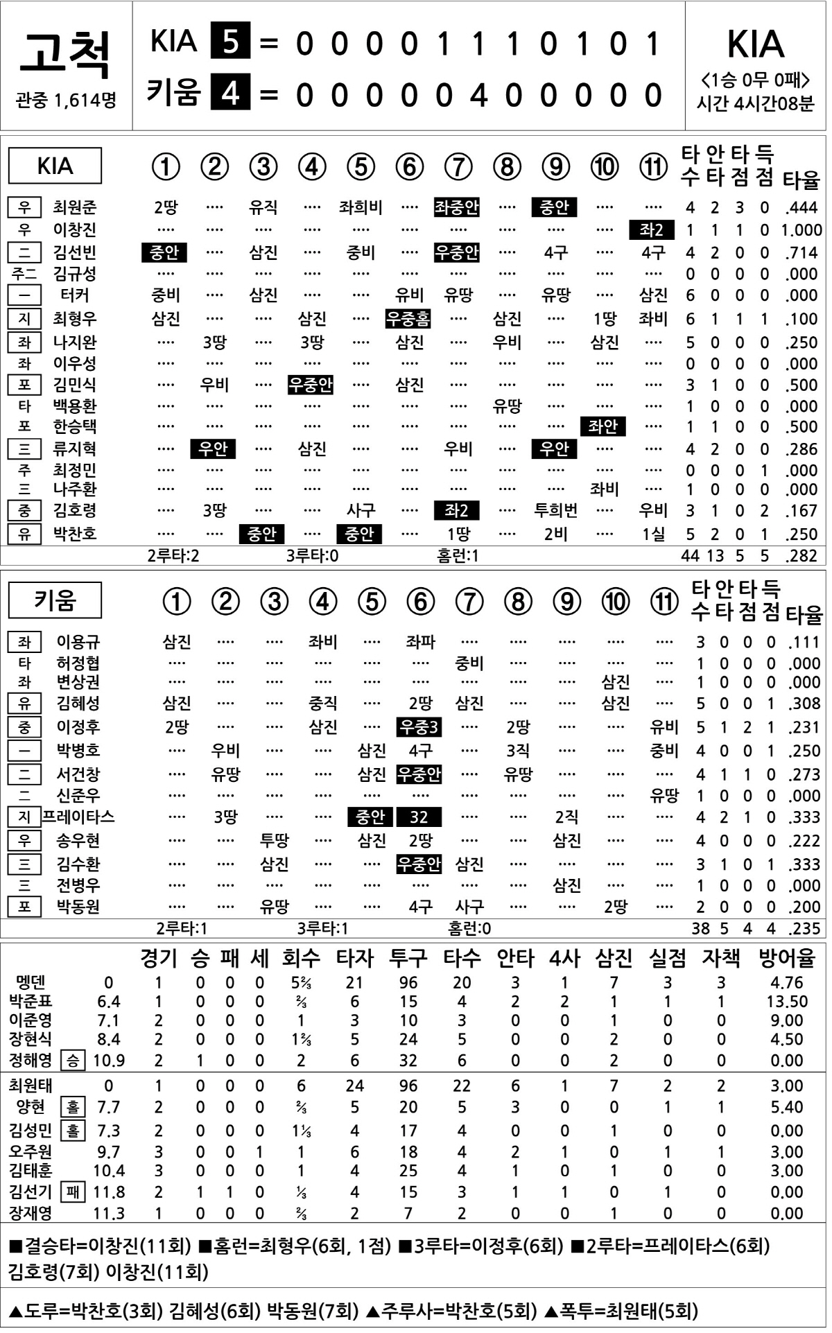 [2021 KBO리그 기록실] KIA vs 키움 (4월 6일)