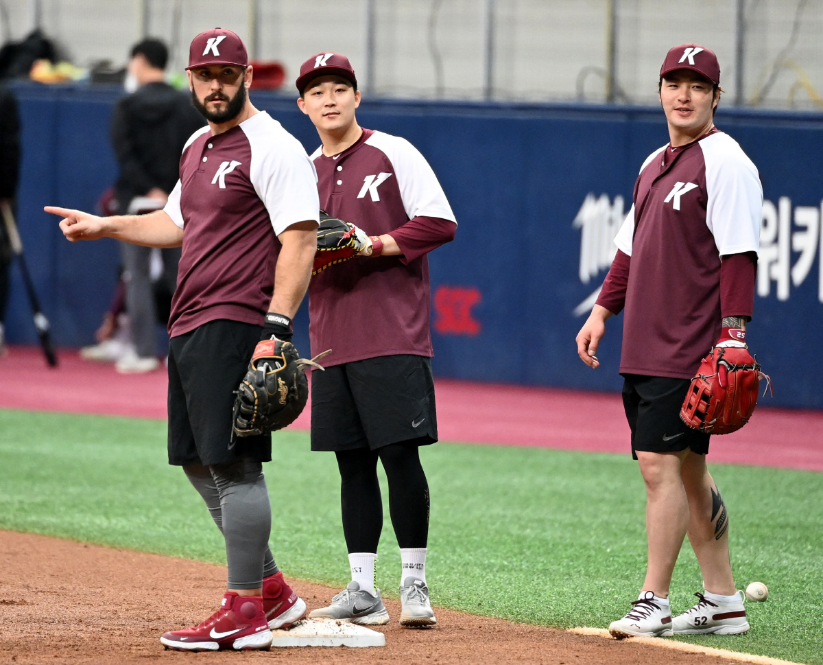[고척=스포츠조선 허상욱 기자] 키움 히어로즈의 1루 자원 박병호, 전병우, 프레이타스가 수비훈련을 소화하며 구슬땀을 흘렸다.