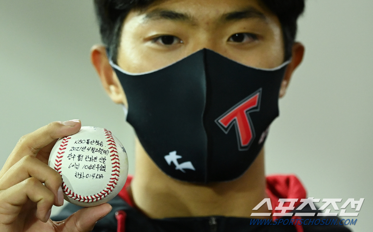 28일 광주 기아챔피언스필드에서 KBO리그 KIA 타이거즈와 한화 이글스의 경기가 열렸다. KIA가 한화에 4대 0으로 승리했다. 데뷔 첫 승을 달성한 이의리가 승리 기념구를 들고 포즈를 취하고 있다. 광주=송정헌 기자 songs@sportschosun.com/2021.04.28/