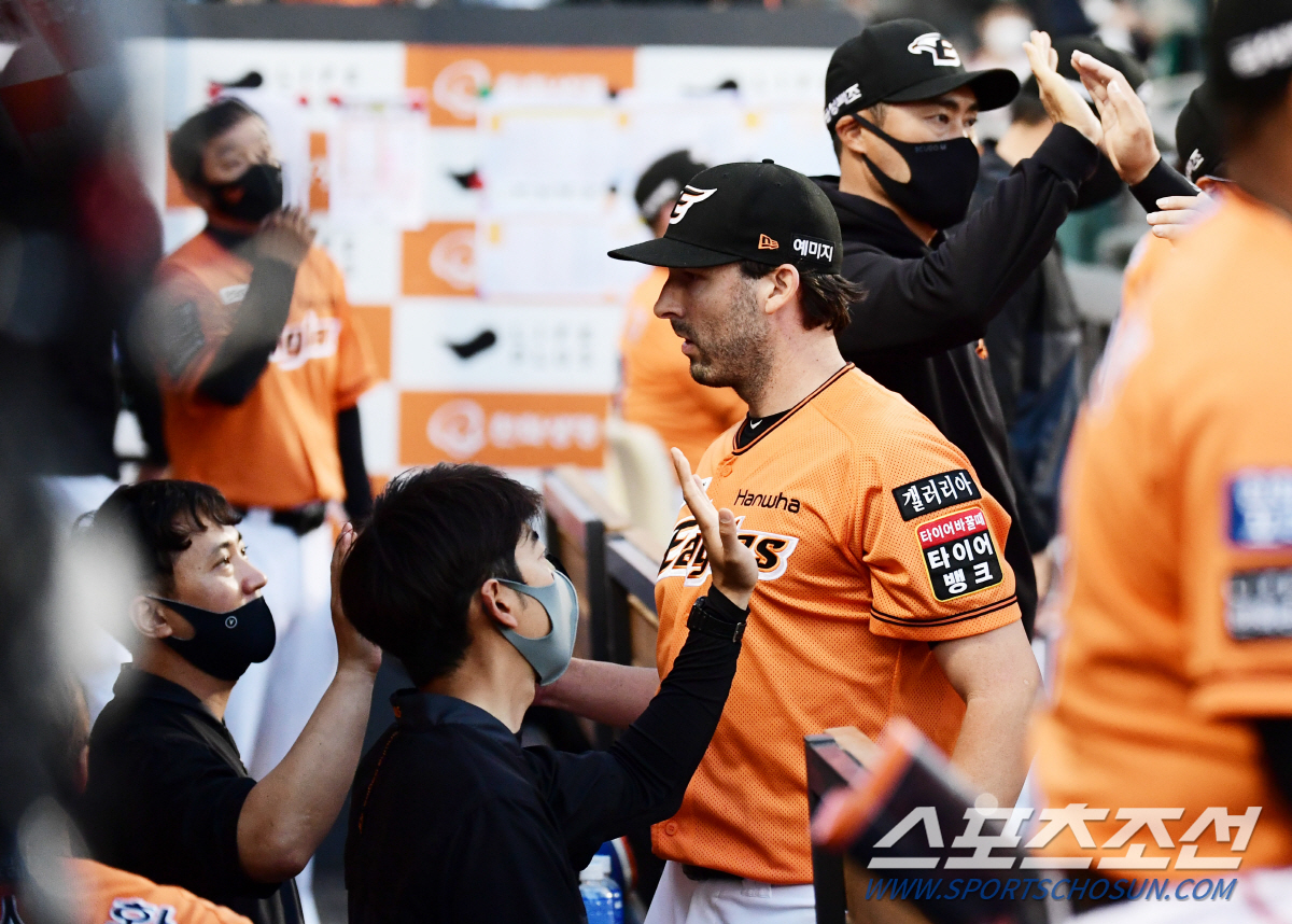 전날까지 카펜터의 득점 지원율은 1.38로 5승을 기록 중인 팀 동료 김민우(2.89점)의 절반도 안 됐다. 이날 경기 전 카를로스 수베로 감독은 "투수가 득점 지원을 컨트롤할 수 없다"고 했지만, 카펜터 입장에서는 아쉬움이 있을 수밖에 없다.