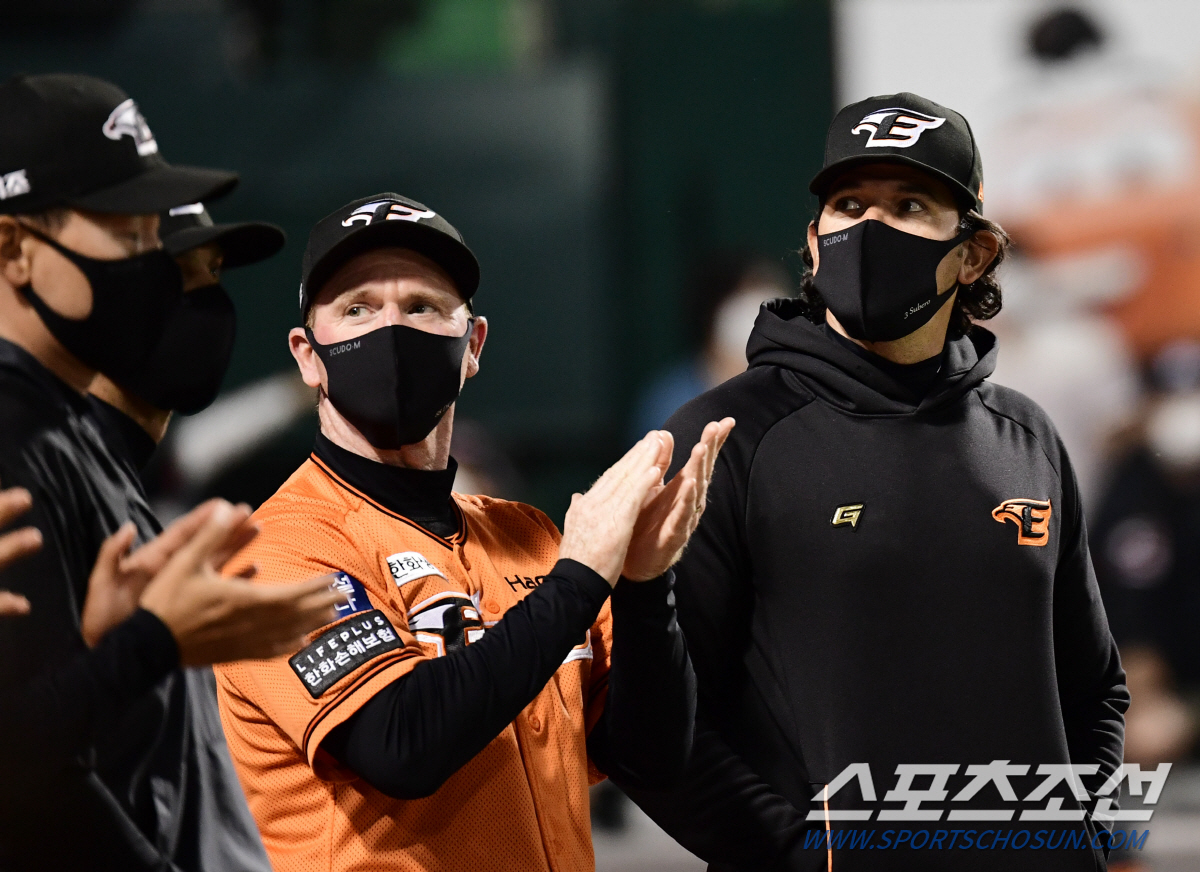 22일 대전 한화생명이글스파크에서 KBO리그 한화와 KT의 경기가 열렸다. 한화가 KT에 승리했다. 경기 종료 후 승리의 기쁨을 나누고 있는 한화 수베로 감독. 대전=송정헌 기자 songs@sportschosun.com/2021.05.22/