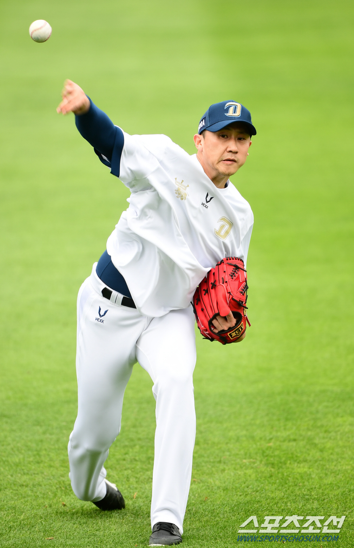 2021 KBO리그 NC다이노스와 삼성라이온즈의 경기가 26일 창원NC파크에서 열릴 예정이다. NC로 이적한 이용찬이 이동욱 감독이 지켜보는 가운데 캐치볼을 하고 있다. 창원=최문영 기자 deer@sportschosun.com /2021.05.26/