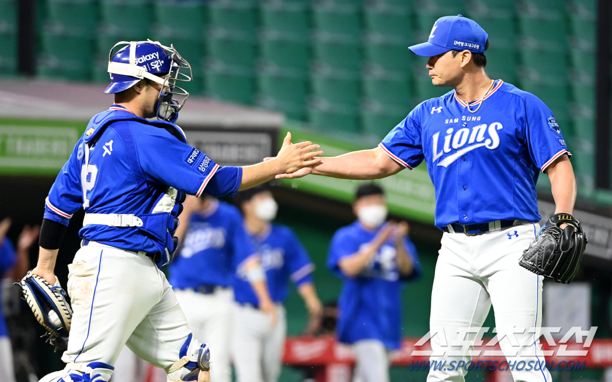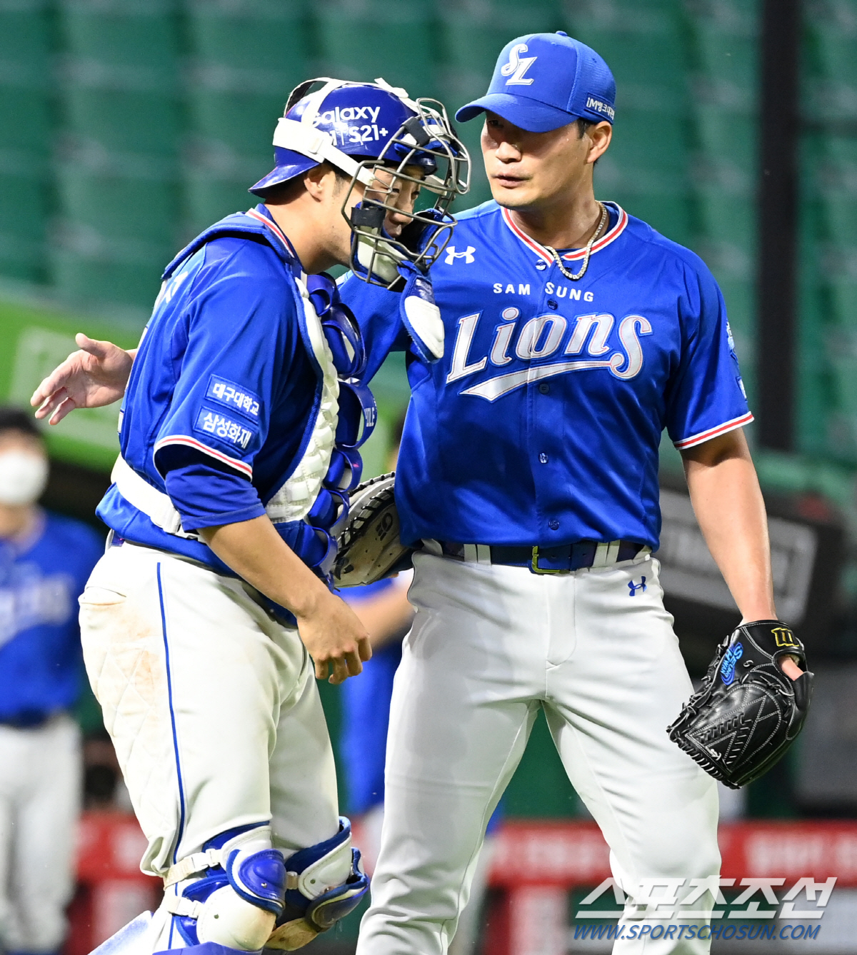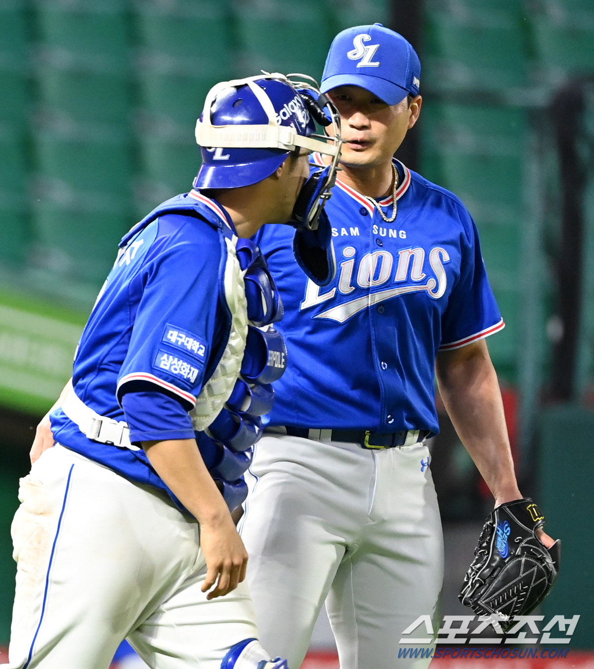 '과감한 송구 칭찬해!' 끝판대장 오승환, 동점위기 지워낸 김민수에 칭찬세례[SC스토리]