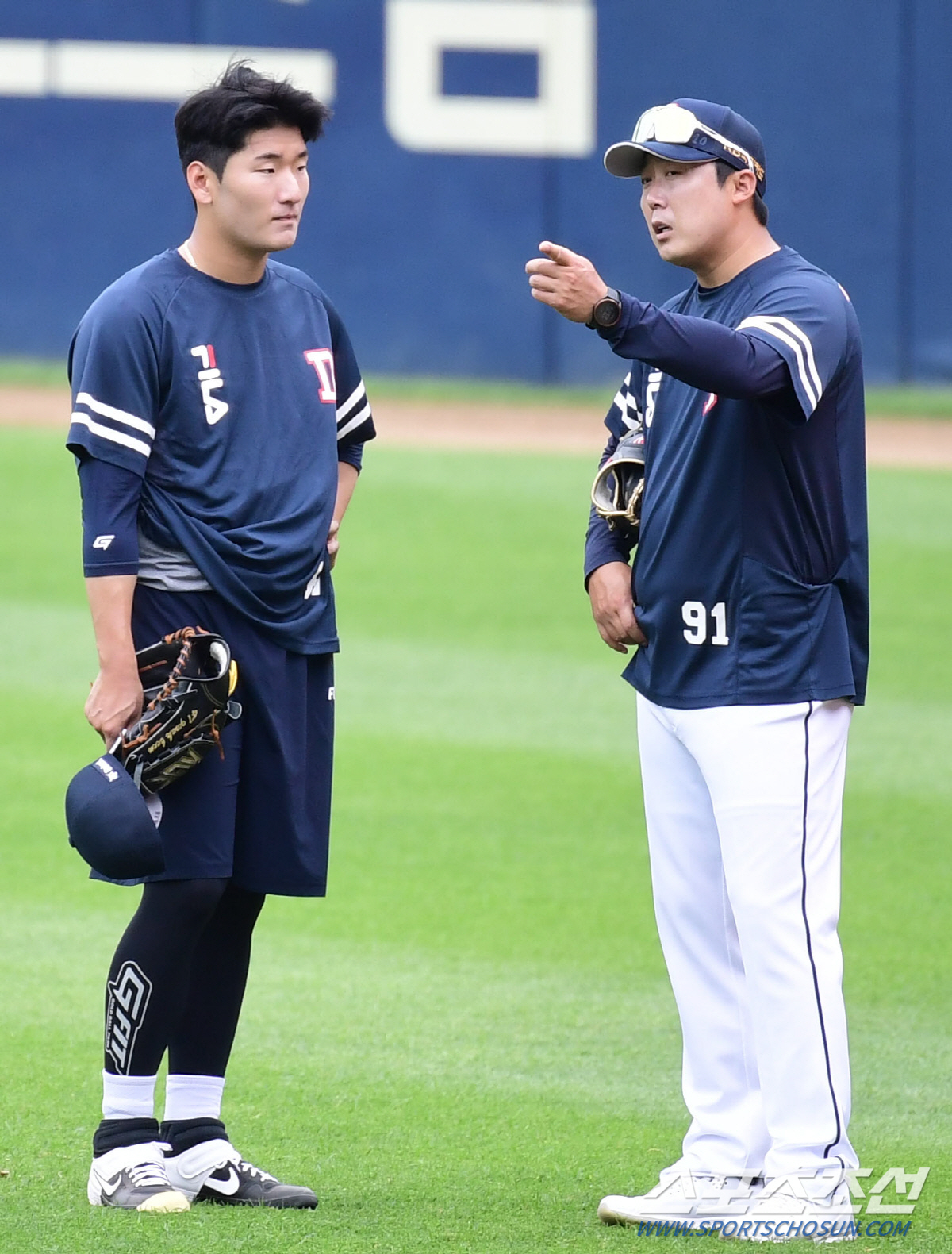 배영수 코치는 곽빈에게 자신감을 강조했다.