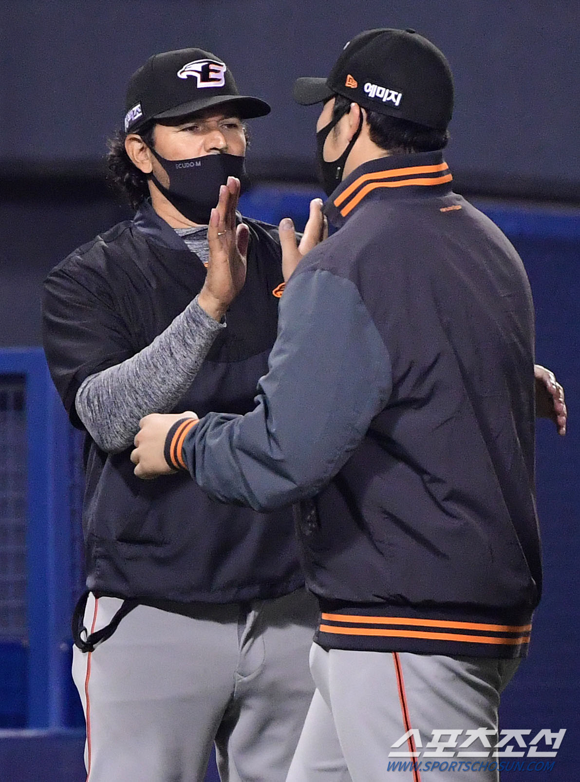 27일 서울 잠실구장, 한화와 두산 경기. 한화가 3-0으로 승리했다. 수베로 감독이 김민우와 하이파이브하고 있다. 잠실=정재근 기자 cjg@sportschosun.com