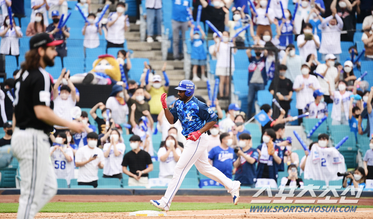'열광하는 홈 팬들' 5회말 2사 1루에서 LG 켈리를 상대로 동점 투런 홈런을 날렸다. 그라운드를 돌고 있는 피렐라.