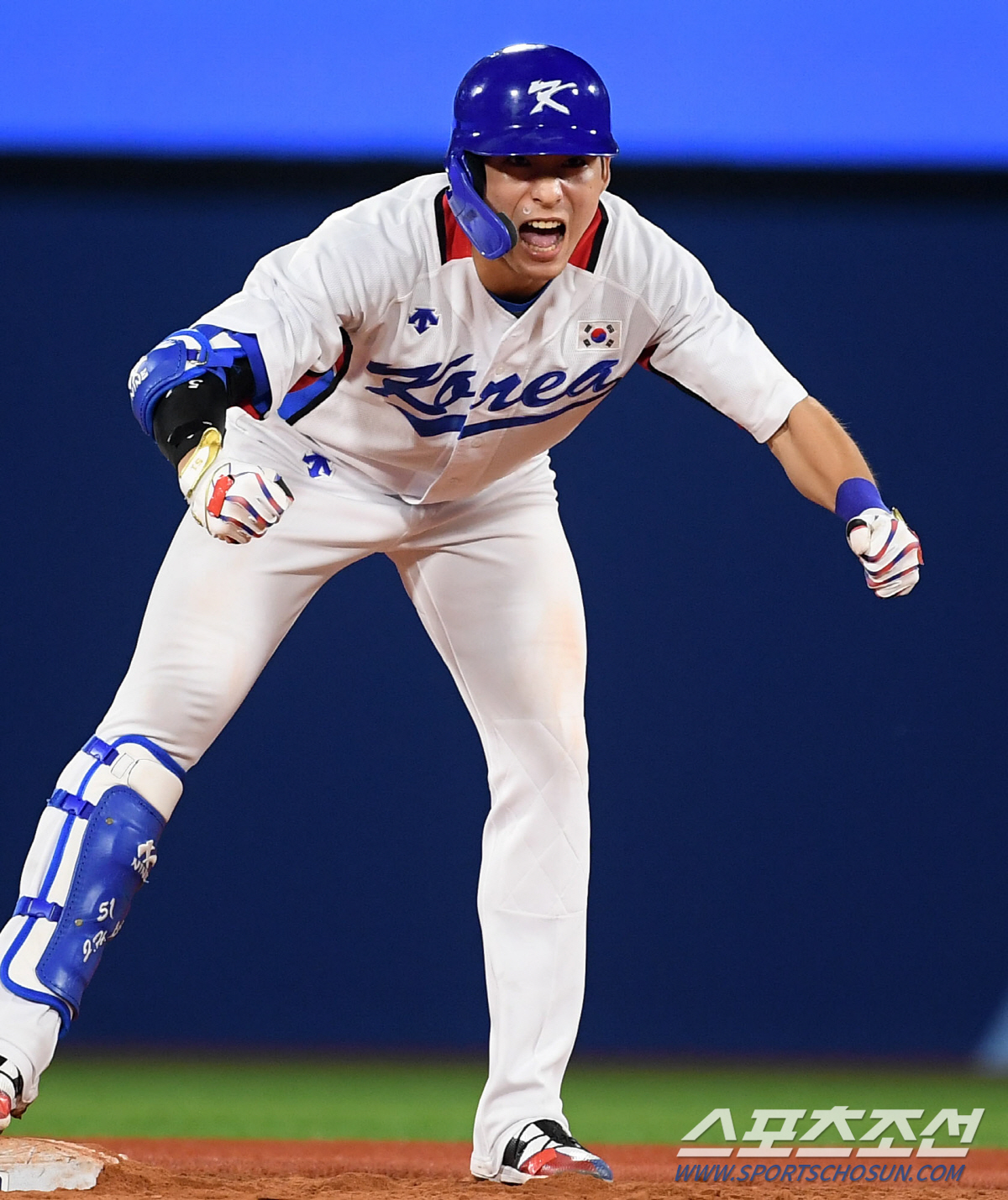 2020 도쿄올림픽 야구 녹아웃 스테이지 1라운드 대한민국과 도미니카의 경기가 1일 요코하마 베이스볼 경기장에서 열렸다. 이정후가 9회말 동점 적시타를 치고 포효하고 있다. 요코하마=최문영 기자 deer@sportschosun.com /2021.08.01/