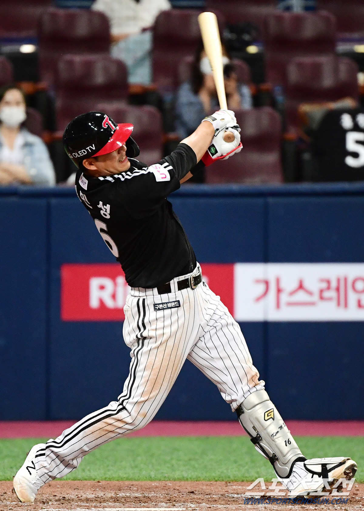 15일 서울 고척스카이돔, LG와 키움 경기. 7회초 2사 1루 김민성이 2루타를 치고 있다. 고척=정재근 기자 cjg@sportschosun.com/2021.6.15/