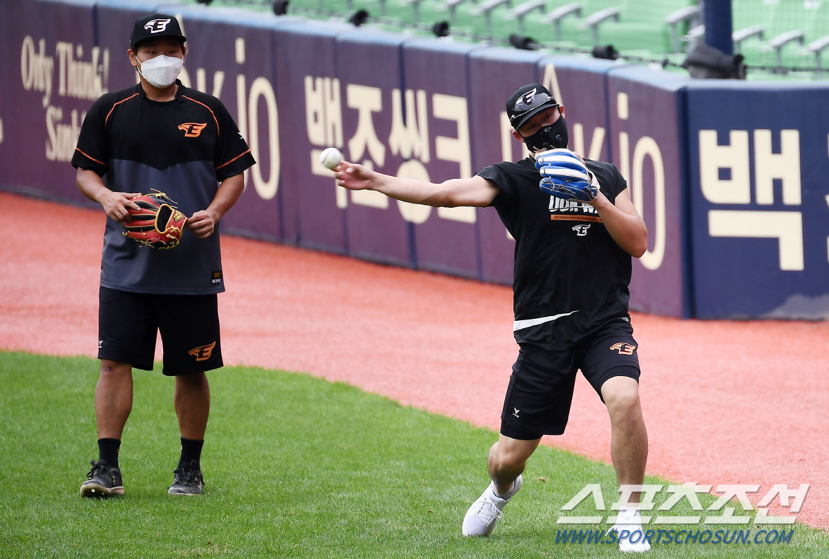경기를 앞두고 한화 수베로 감독이 김태연과 수비 훈련을 하고 있다. 잠실=박재만 기자 pjm@sportschosun.com