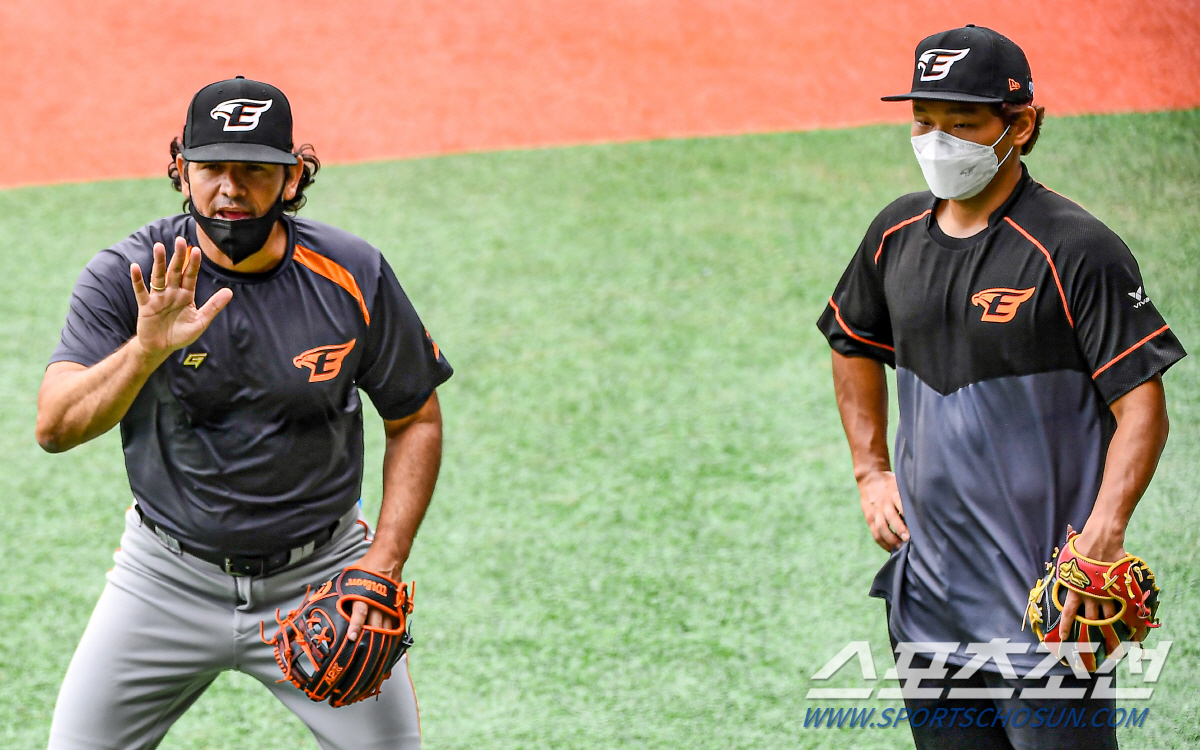 이날 경기 전 수베로 감독은 김태연을 따로 불렀다. 배트와 공을 들고 그라운드에 나타난 수베로 감독은 김태연과 한동안 대화를 나눈 뒤 1대1 맞춤형 수비 훈련을 이어나갔다. 메이저리그 현역 시절 내야수로 뛴 자신의 노하우를 직접 시범까지 보이며 김태연에게 전수해주었다.
