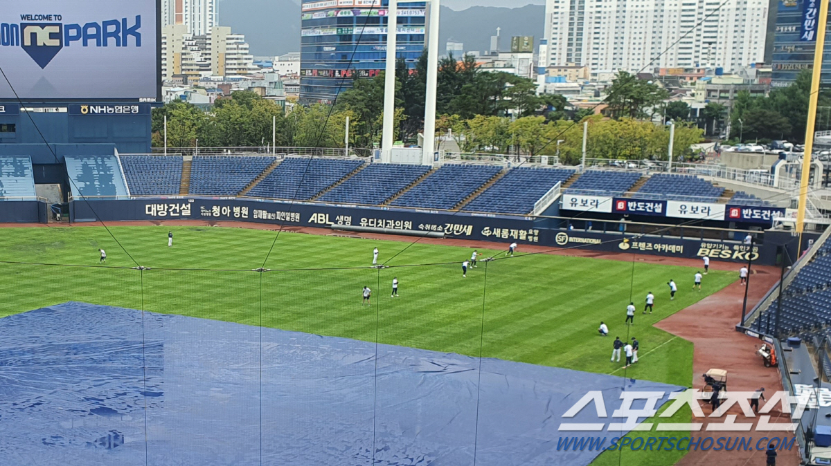 [창원=스포츠조선 권인하 기자]태풍 아마미아가 지나간 뒤 드디어 비가 멈췄다. NC 다이노스 선수들이 나와 캐치볼을 시작했고, 곧바로 그라운드 정비도 시작됐다.