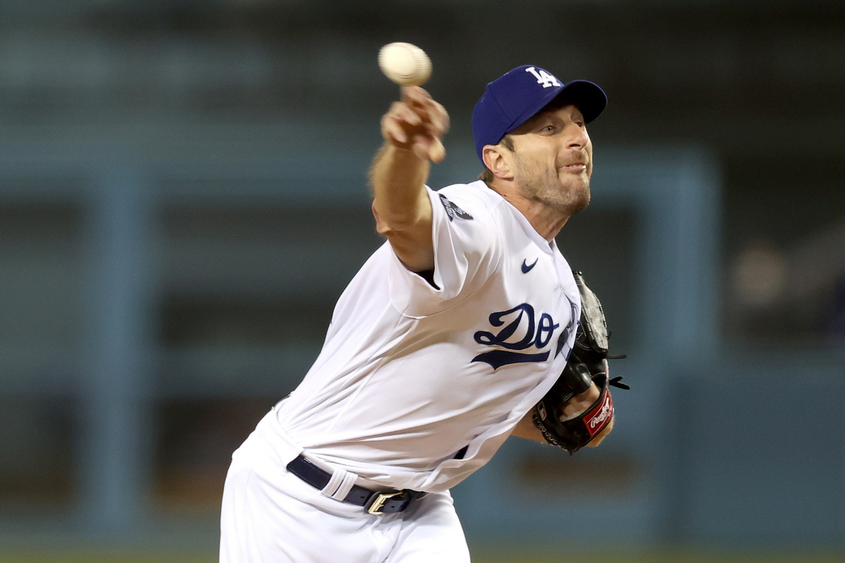 LA 다저스 맥스 슈어저가 지난 12일(한국시각) 샌프란시스코 자이언츠와의 디비전시리즈 3차전에 등판해 1회초 힘차게 공을 뿌리고 있다. AFP연합뉴스