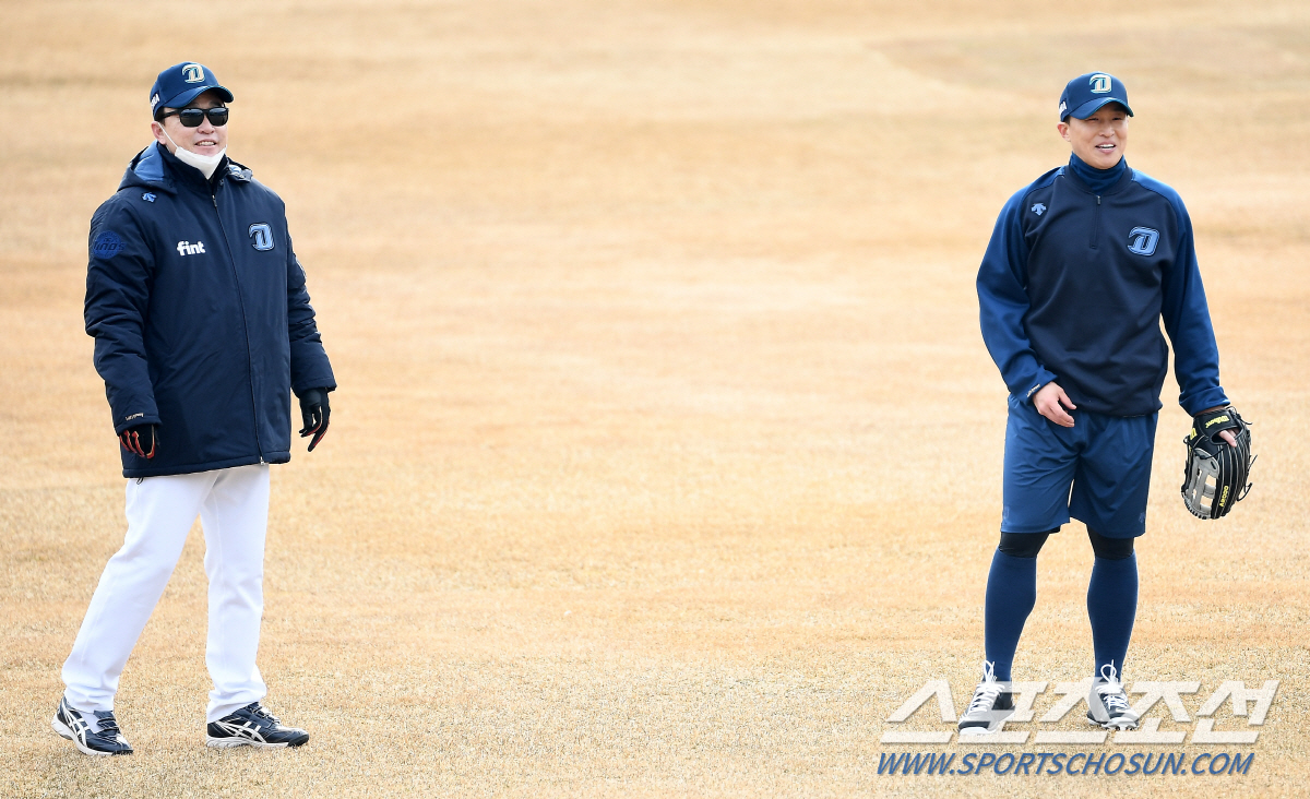 스프링캠프 첫날부터 박건우와 손아섭은 한 조를 이뤄 마산야구장에서 라이브 배팅을 소화했다. 두 선수의 타격을 뒤에서 지켜보던 이동욱은 감독은 흐뭇한 표정을 지었다.