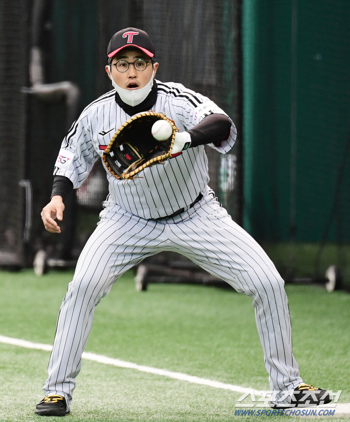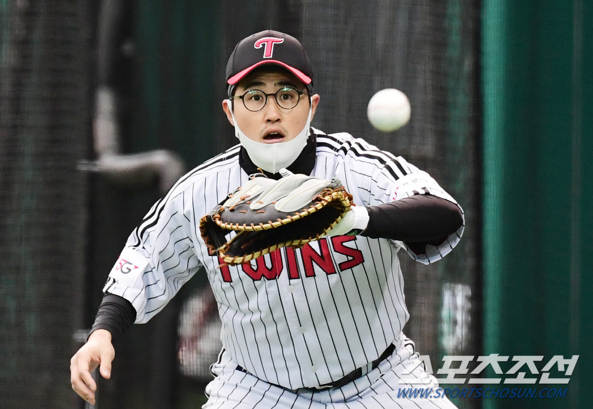 [이천=스포츠조선 송정헌 기자] 1루수 겸업을 선언한 채은성이 1루 수비에 열을 올리고 있다.