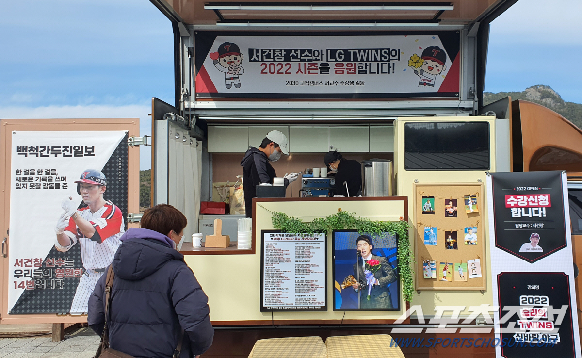 [통영=스포츠조선 권인하 기자]LG 트윈스에도 응원의 커피차가 답지하고 있다.