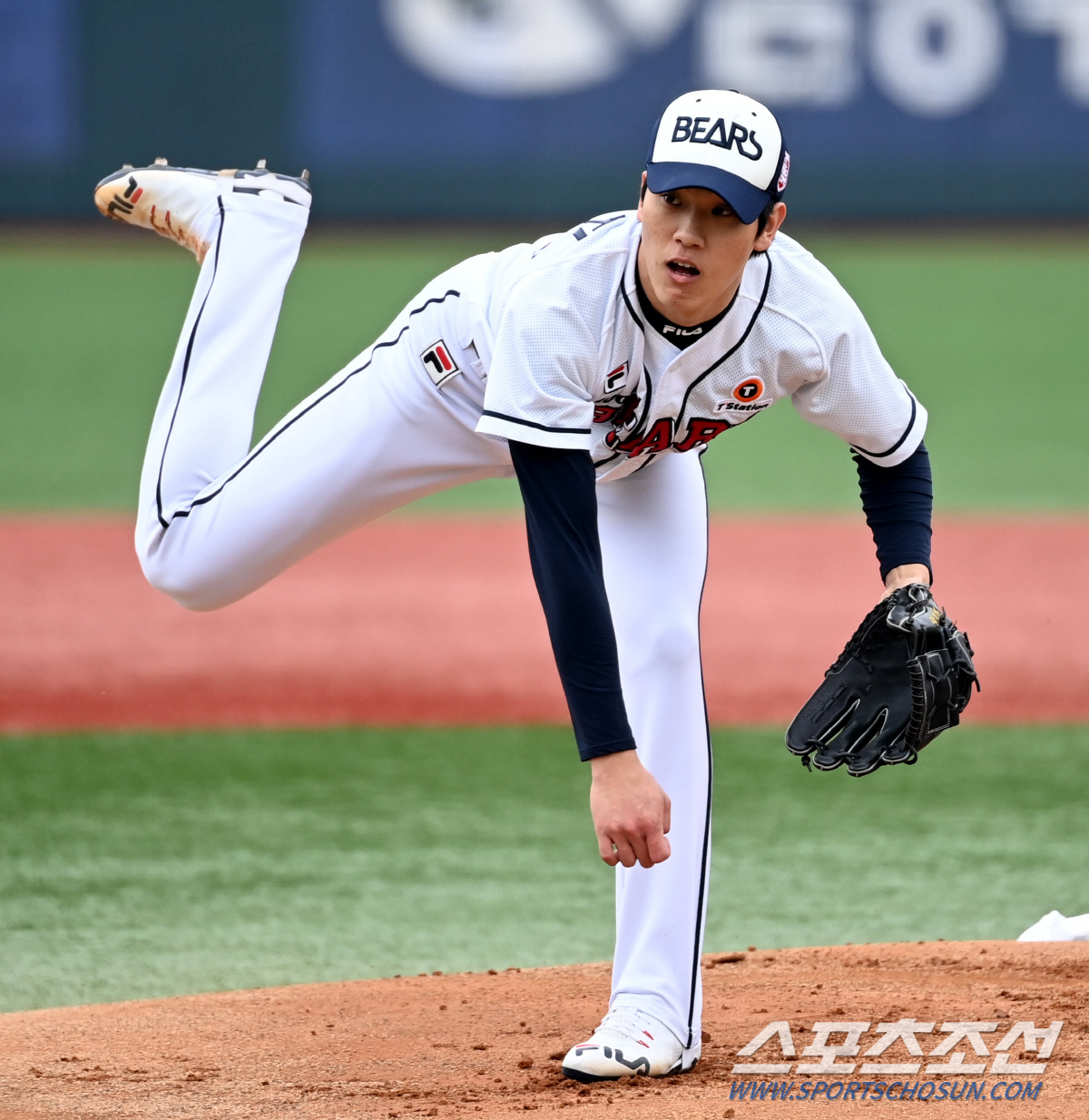 [울산=스포츠조선 허상욱 기자] 병역을 마치고 돌아온 두산의 박신지가 첫 실전에서 인상적인 투구를 선보였다.