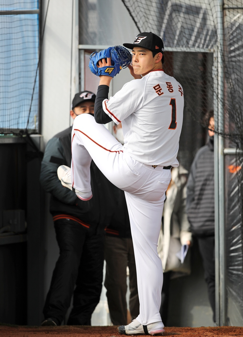 신인왕 1순위 후보는 한화 파이어볼러 문동주(19)다. 불펜 피칭에서 이미 시속 155㎞를 뿌린 우완 파이어볼러. 페이스를 끌어올리다 내복사근 미세 손상으로 2주간 페이스를 조절했다. 개막에 맞출 수는 없지만 구단의 철저한 관리 속에 조절해 가며 선발 등판할 경우 존재감을 발휘할 가능성이 크다.