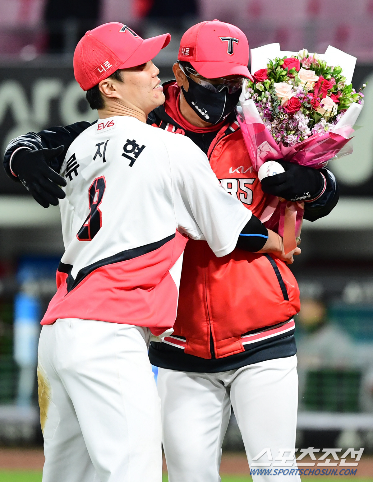 2022 KBO리그 KIA타이거즈와 한화이글스의 경기가 5일 광주기아챔피언스필드에서 열렸다. KIA 김종국 감독이 한화 상대 4대3 승리를 확정짓고 류지혁과 포옹하고 있다. 광주=최문영 기자 deer@sportschosun.com/2022.04.05/