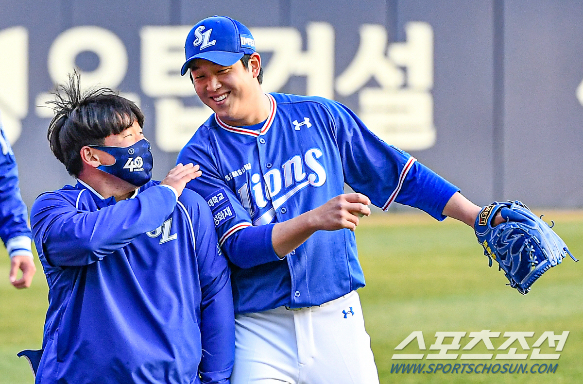 떨리는 마음으로 마운드에 오른 삼성 양창섭은 이날 동갑내기 친구 두산 곽빈과 선발 맞대결을 펼쳤다.