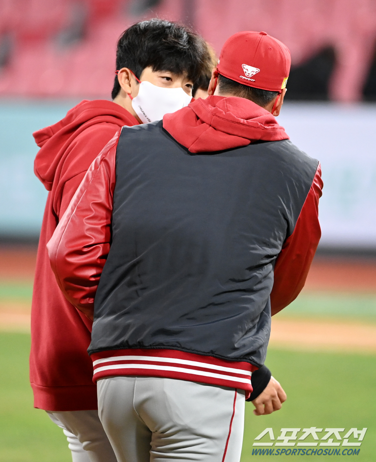 경기는 3-0, SSG의 승리로 끝이 났다. 개막 후 4연승. 그라운드로 나선 오원석의 옆에는 '에이스' 김광현이 있었다. 김광현은 환한 미소로 팀의 승리를 자축했고 오원석에 주먹을 내밀어 하이파이브를 건냈다.