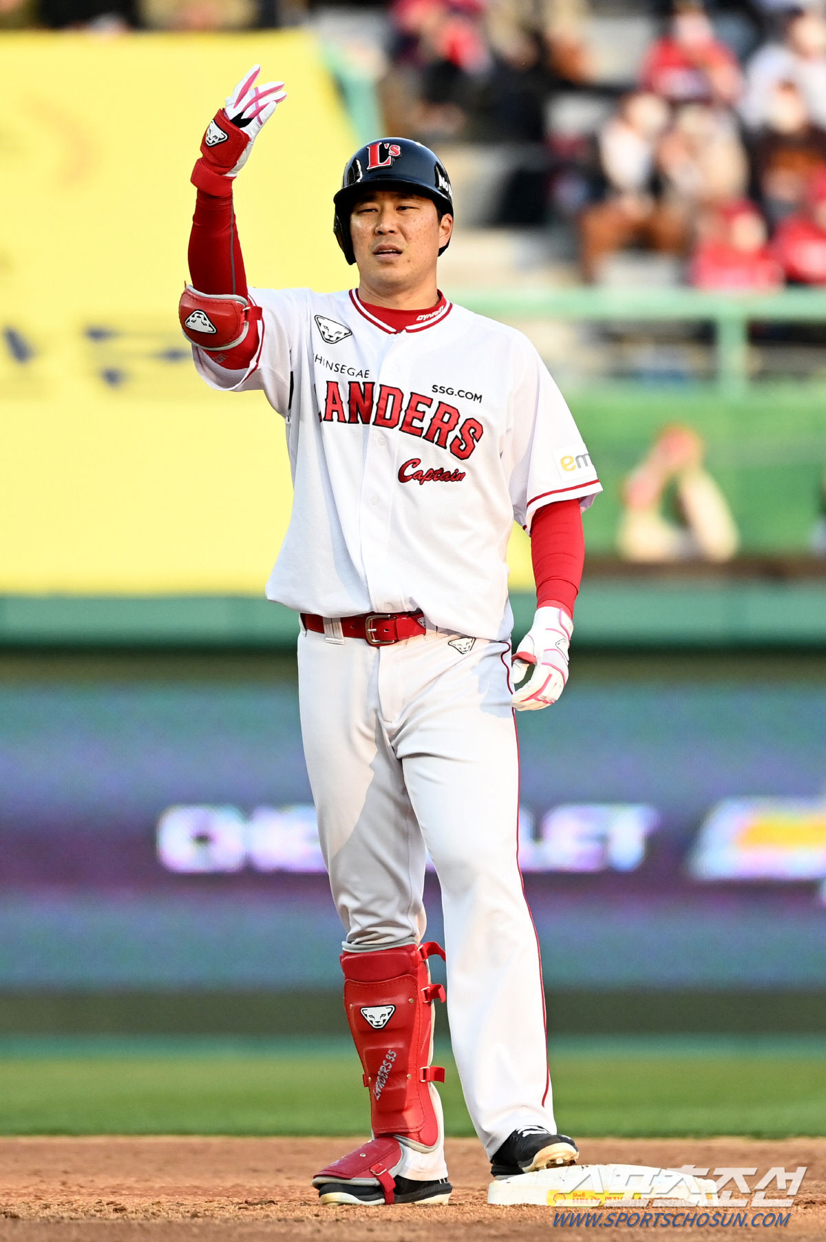 SSG 한유섬은 연일 불 방망이로 소속팀의 개막 8연승을 이끌고 있다. 8경기 중 절반이 멀티히트. 0.406의 타율과 2홈런, 15타점으로 괴력을 발휘하고 있다. 13안타 중 홈런과 2루타 등 장타가 절반이 넘는 7개다.