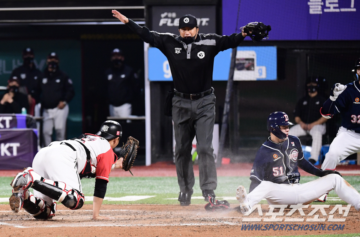 4회 2사 만루 찬스를 날린 KT는 5회에 다시 2사 후 김민혁의 내야 안타와 황재균의 안타로 1,3루 찬스를 잡았다. 라모스 타석에서 폭투가 나왔고, 3루 주자 김민혁이 홈을 밟아 한 점을 만회했다.
