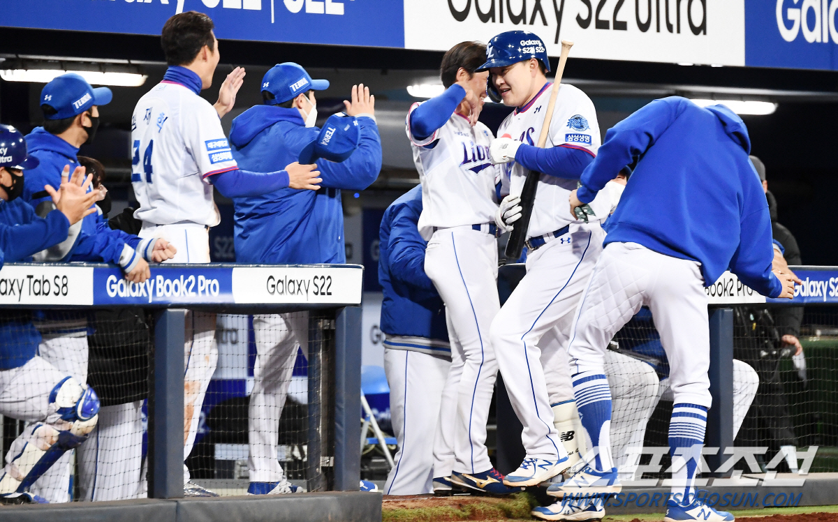 2022 KBO리그 삼성 라이온즈와 한화 이글스의 경기가 14일 대구 삼성라이온즈파크에서 열렸다. 6회말 무사 1루 삼성 오재일이 역전 투런포를 날린 뒤 환호하고 있다. 대구=박재만 기자 pjm@sportschosun.com/2022.04.14/