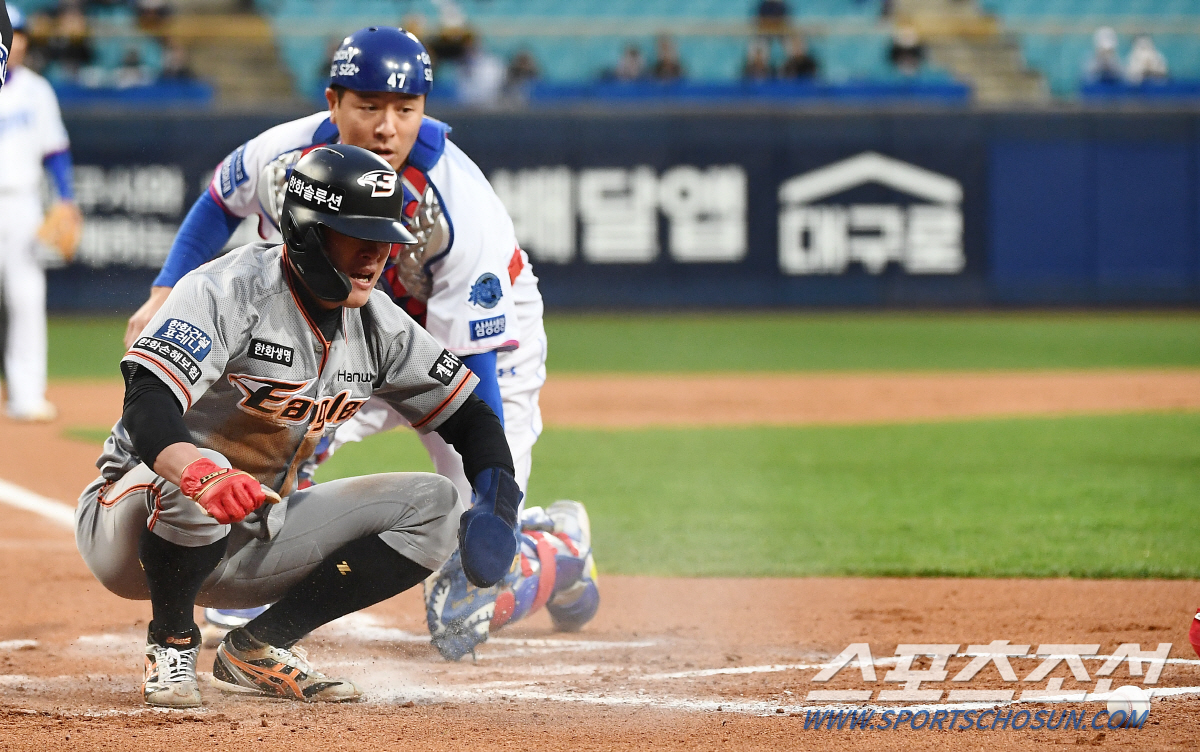 뷰캐넌은 에이스답게 무사 1,3루에서 중심 타자 터크먼과 노시환을 잇달아 삼진 처리했다. 노시환이 삼진을 당하는 순간 스타트를 끊은 1루주자 김태연이 1,2루 간에서 협살에 걸렸다. 1루수 오재일이 공을 쥐고 있는 상황에서 3루주자 노수광이 홈으로 쇄도했다. 오재일의 송구가 정확히 배달됐지만 태그 과정에서 충격으로 미트에서 공이 튕겨 나갔다. 무사 1,3루 위기를 무실점으로 정리할 수 있었던 상황. 강민호의 포구 실책으로 내준 선제 실점이었다.