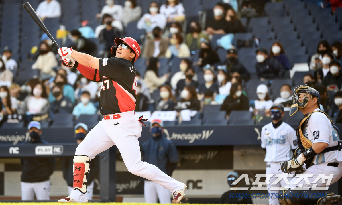 맞는 순간 엄청난 스피드(타구 속도 173.8km, 발사각 28.1°)로 날아간 타구는 NC파크 우측 담장 너머로 날아갔다. 비거리 138.2m 장외 홈런이었다.