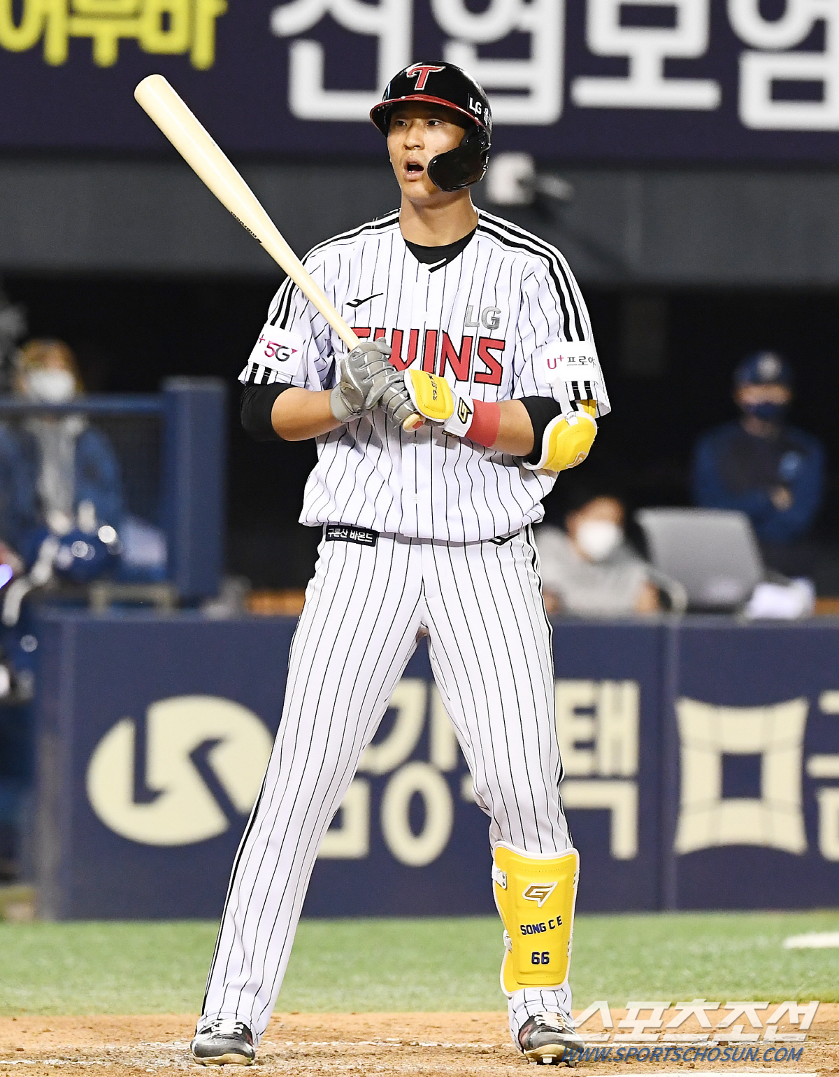 하지만 가능성은 보여줬으되 프로 1군의 높은 벽을 절감했다. 송찬의는 총 7경기(선발출전 5)에 나섰지만, 타율 1할8푼8리(16타수 3안타) 홈런없이 2타점에 그쳤다. 적극적인 타격에 임한 결과 삼진은 5개인 반면 볼넷은 하나도 없다. 김현수-박해민-홍창기-문성주까지 외야가 꽉 찼음에도 적지 않은 타석이 주어진 결과, 현재까진 보여준 게 없다. 자신감 회복을 위해서라도 2군 행이 절실했다. 송찬의가 빠진 자리는 선발투수 김윤식이 메운다.