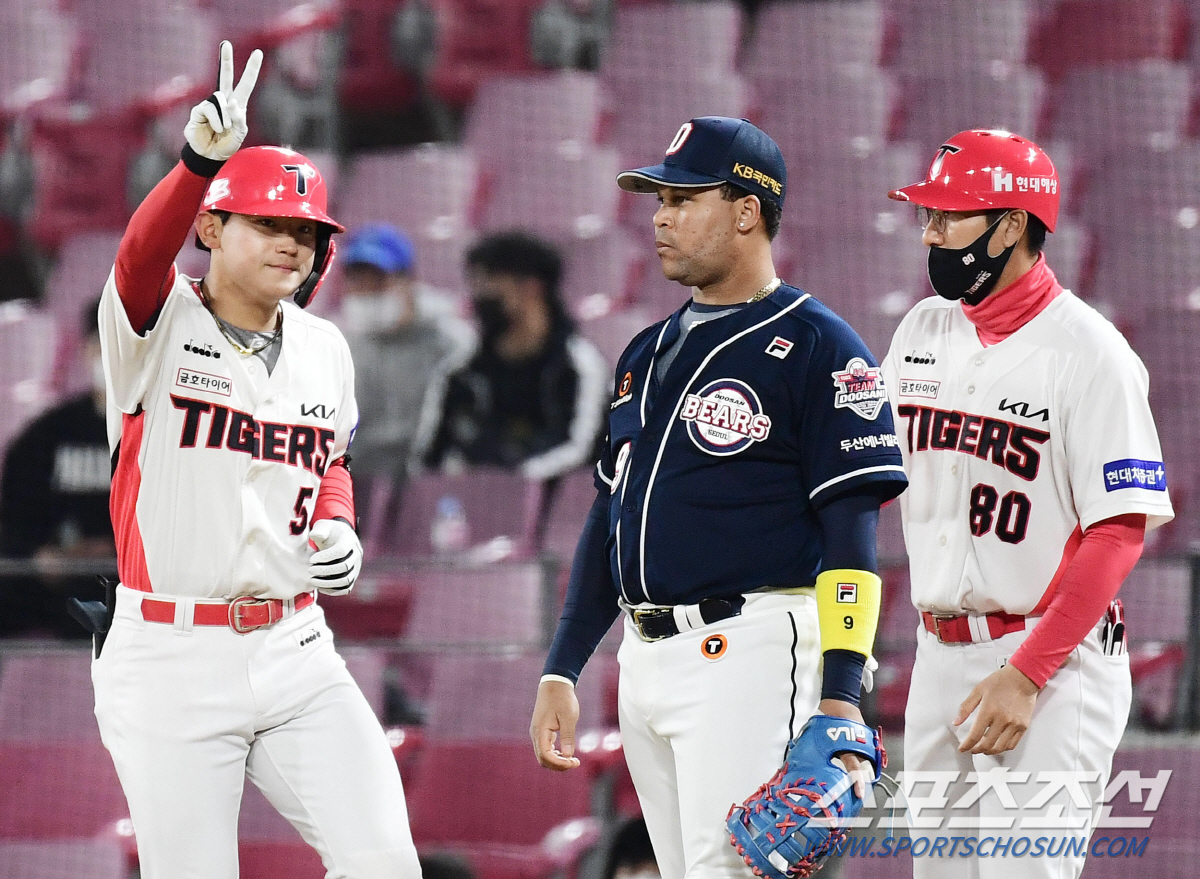 3-2로 끌려가던 7회 선두타자로 나온 김도영은 바뀐 투수 두산 홍건희를 상대로 초구를 노려 좌전안타를 만들었다. 이어 홍건희의 와일드피칭 때 1루주자 김도영은 2루를 돌아 3루까지 내달렸다. 조금은 무리스럽게 보인 주루였으나 김도영은 3루에서 힘차게 슬라이딩하며 세이프 됐다.