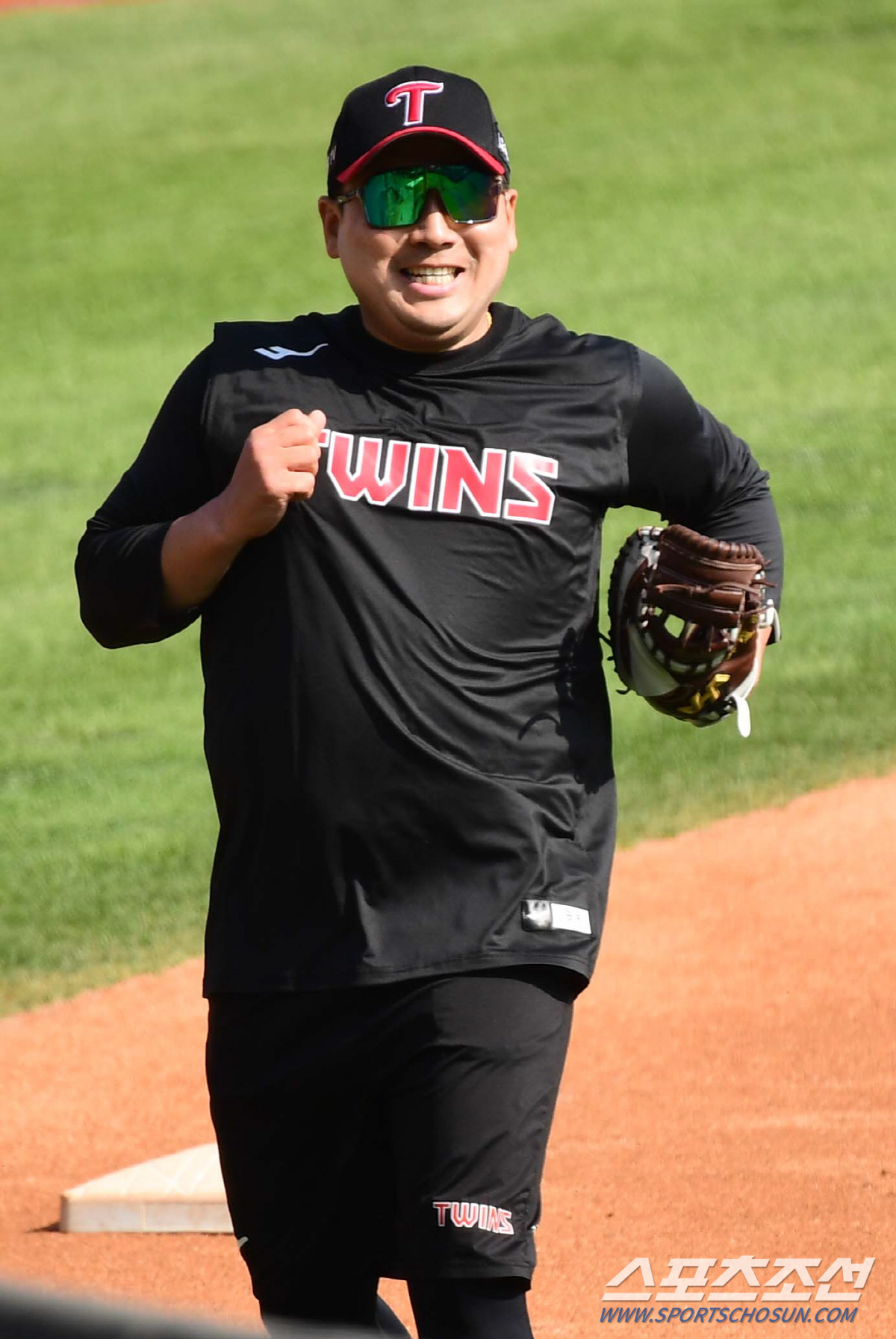 지칠 줄 모르는 '백전노장' 허도환의 3루수 변신 모습을 영상에 담았다. 잠실=최문영 기자 deer@sportschosun.com/2022.04.20/