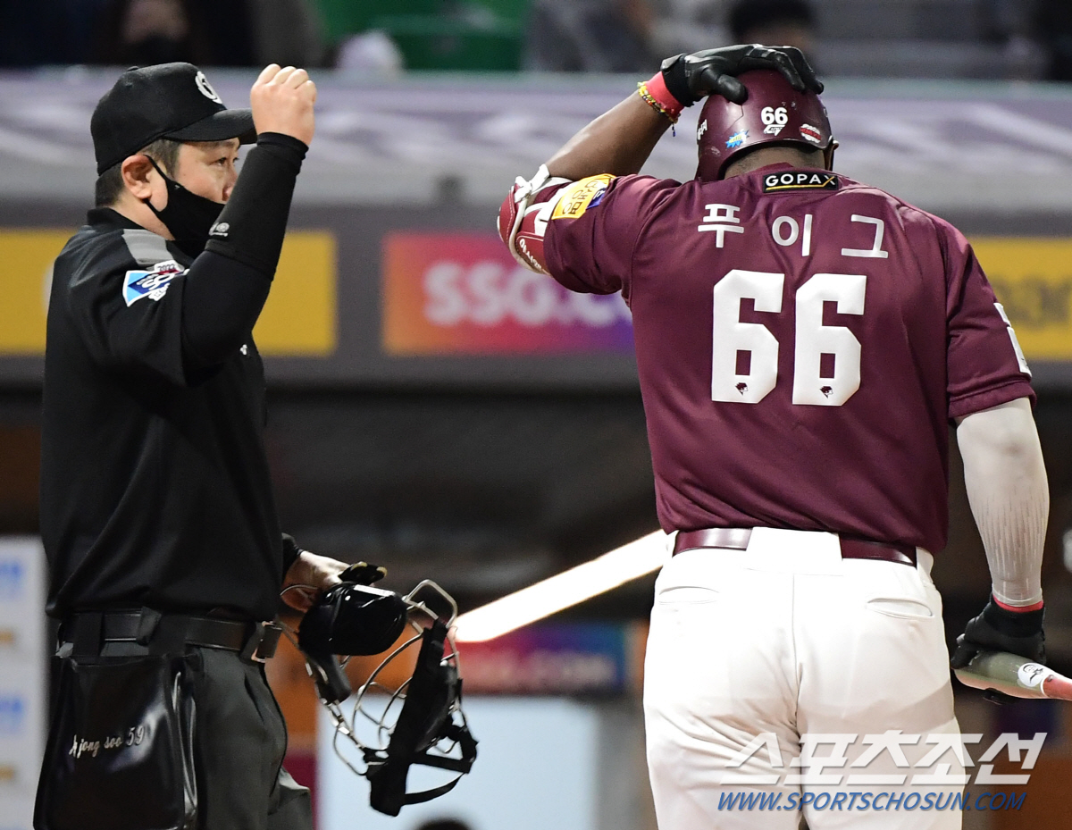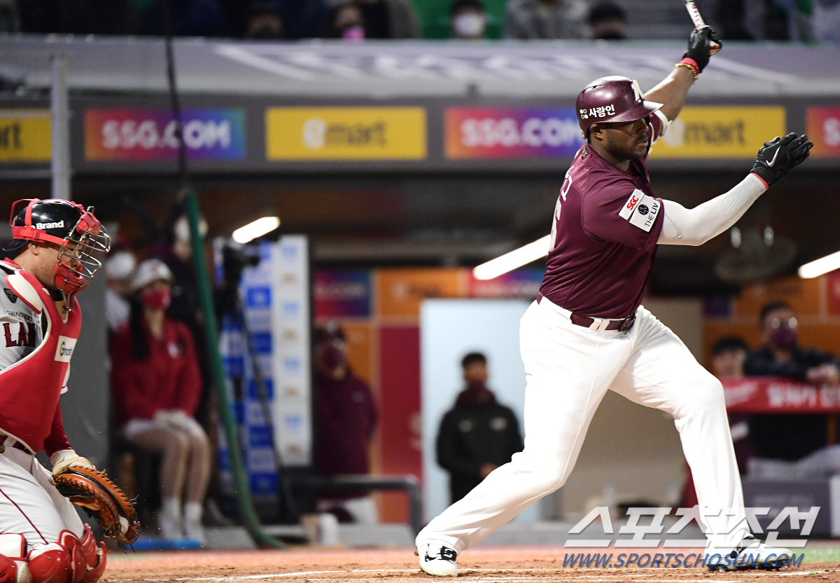 푸이그의 한 방이면 단숨에 동점이 되는 상황. 푸이그는 20일 3연전 첫 경기에서 오원석을 상대로 시즌 3호 솔로포를 쏘아 올렸다.