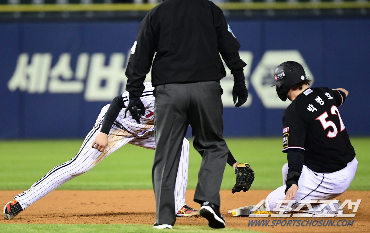 주저 없이 스타트를 끊은 박병호는 2루에 안착했다. 갑작스러운 도루 시도에 놀란 포수 허도환이 당황에 공을 뒤늦게 2루에 뿌려봤지만 박병호가 살짝 빨랐다. 워낙 안 뛰는 주자. 예상하지 못했던 도루였기에 포수가 연속 동작으로 대응하지 못했다.