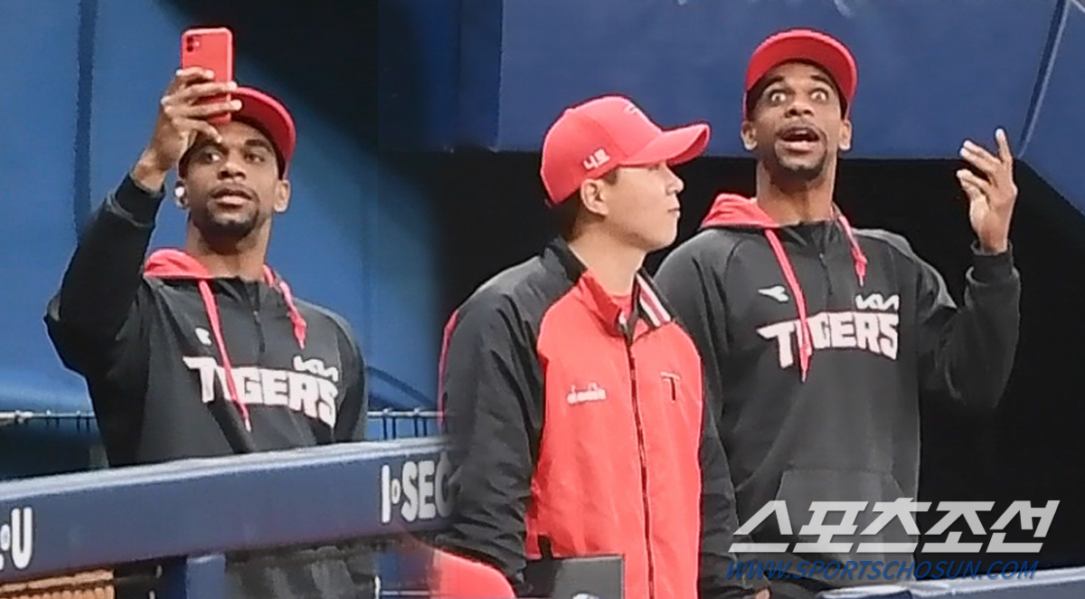 장비를 푼 선수들이 몸을 풀기 위해 외야 그라운드를 향하고 있는 가운데 더그아웃에서 천장을 바라보며 연신 "우와"를 외치는 선수가 있었다. 그 주인공은 바로 KIA 타이거즈 외국인 투수 로니 윌리엄스였다.