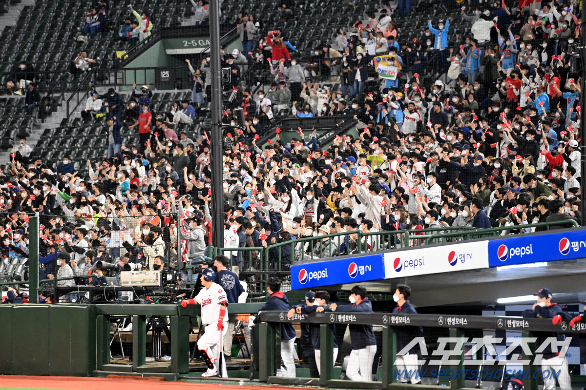 | 2022 KBO리그 개막전 두산베어스와 한화이글스의 경기가 2일 서울 잠실야구장에서 열렸다. 거리두기가 사라진 관중석에서 응원전이 펼쳐지고 있다. 잠실=최문영 기자 deer@sportschosun.com/2022.04.02/ |