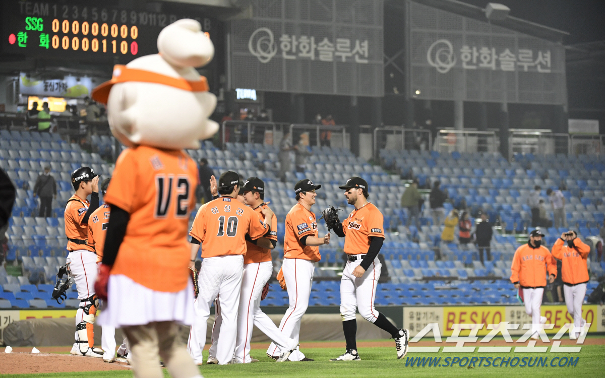한화는 22일 대전 한화생명이글스파크에서 열린 SSG와의 경기에서 2대0 승리를 거뒀다. 이날 경기 전까지 5승12패로 NC 다이노스와 공동 최하위이던 한화는, 대어 SSG를 잡으며 단독 9위로 올라서는데 성공했다.