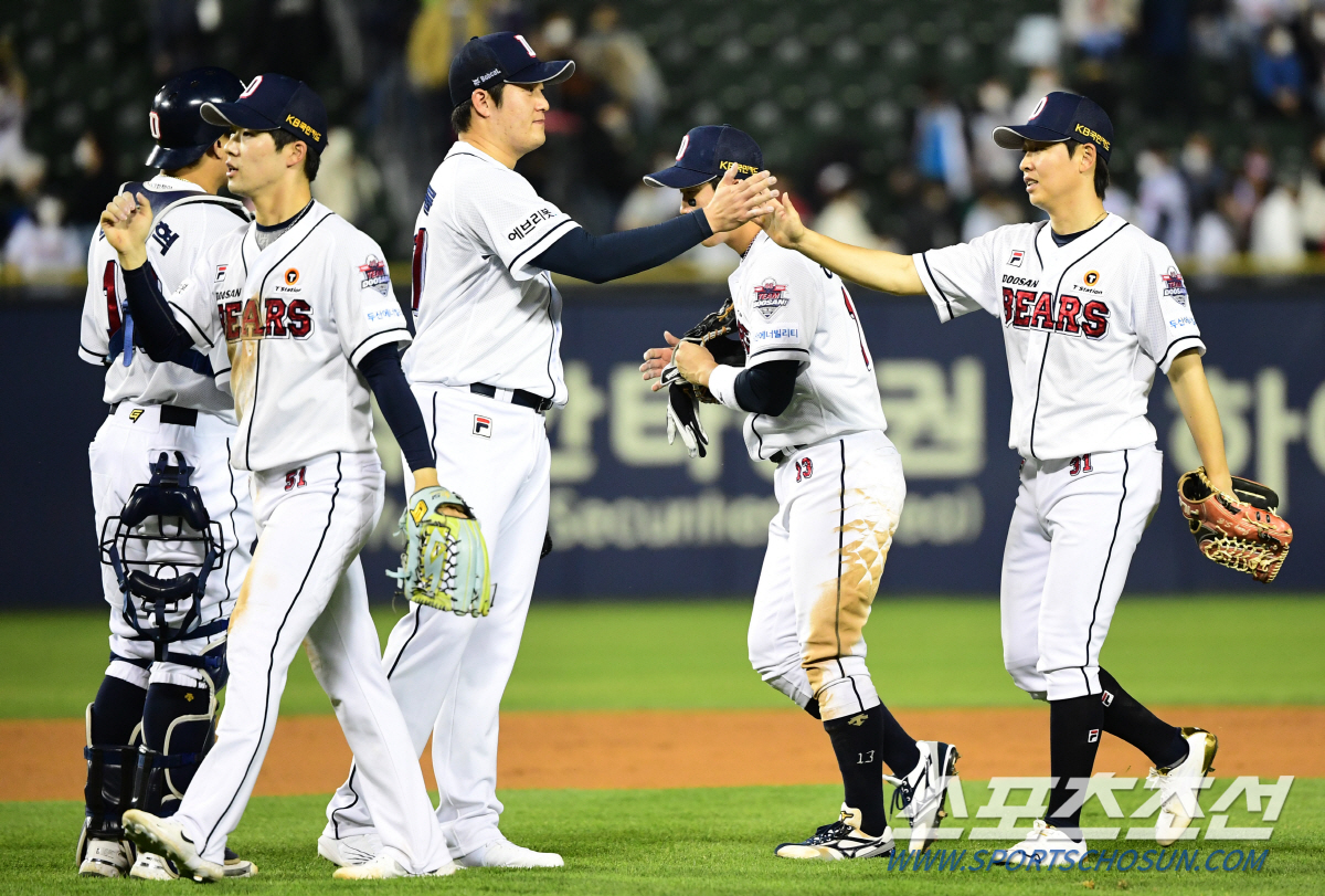 타선에서 4점을 지원해준 가운데 불펜의 호투가 빛났다. 선발 투수 아리엘 미란다가 3이닝 2실점으로 부진한 가운데 최승용(3이닝 무실점)-홍건희(1이닝 무실점)-임창민(1이닝 무실점)-김강률(1이닝 무실점)이 마운드를 지켰다.