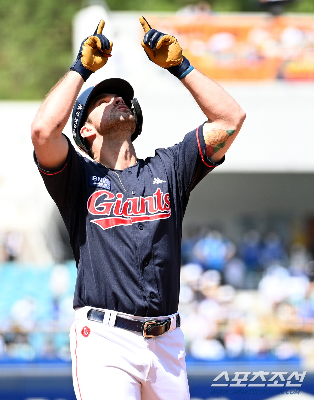 3-2로 박빙의 리드를 이어가던 5회초 1사 1루에서 천금 같은 투런 홈런을 날렸다. 풀카운트에서 직전 이닝까지 3이닝 무안타 무실점으로 호투하던 삼성 두번째 투수 임대한의 슬라이더를 당겨 왼쪽 담장을 넘겼다. 올시즌 마수걸이 홈런이 결정적인 순간 터졌다. 2사 후 홈런 1위 한동희의 시즌 6호 쐐기 솔로포가 터졌다. 한동희는 4-6으로 추격당한 9회초에도 쐐기 적시 2루타를 날리며 3루타 빠진 사이클링 히트와 2타점으로 승리를 이끌었다.