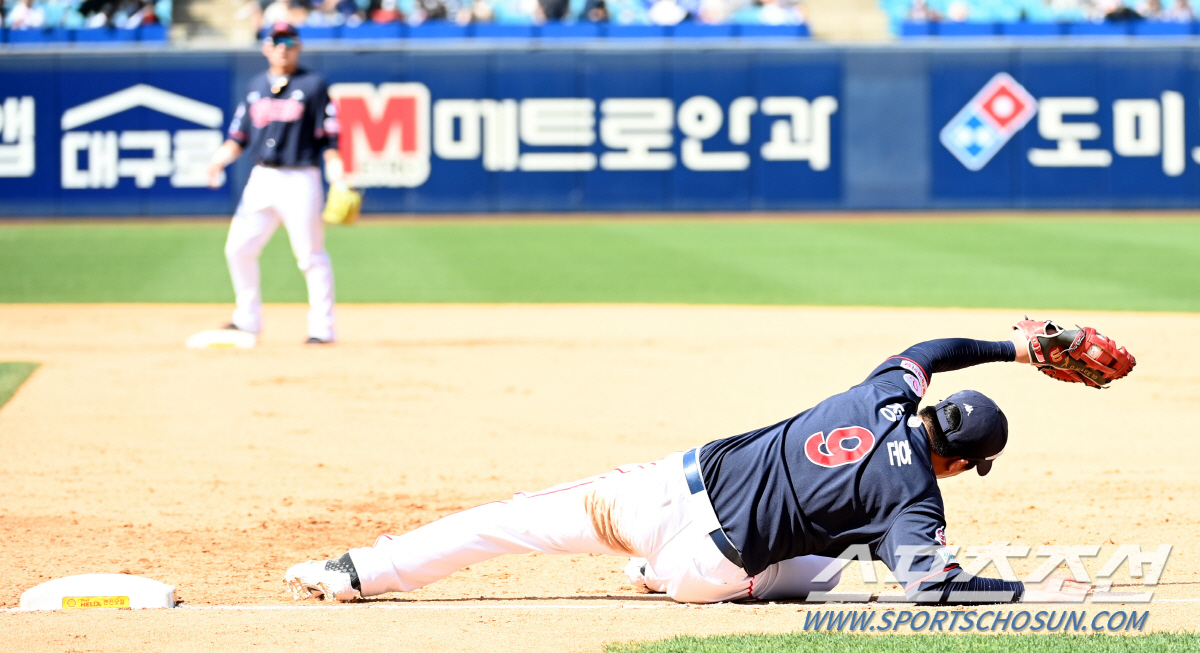 후속 타자로 나선 강민호는 이인복의 5구째 몸 쪽 깊은 투구를 받아쳤고 타구는 3루 라인 깊은 곳으로 향했다.